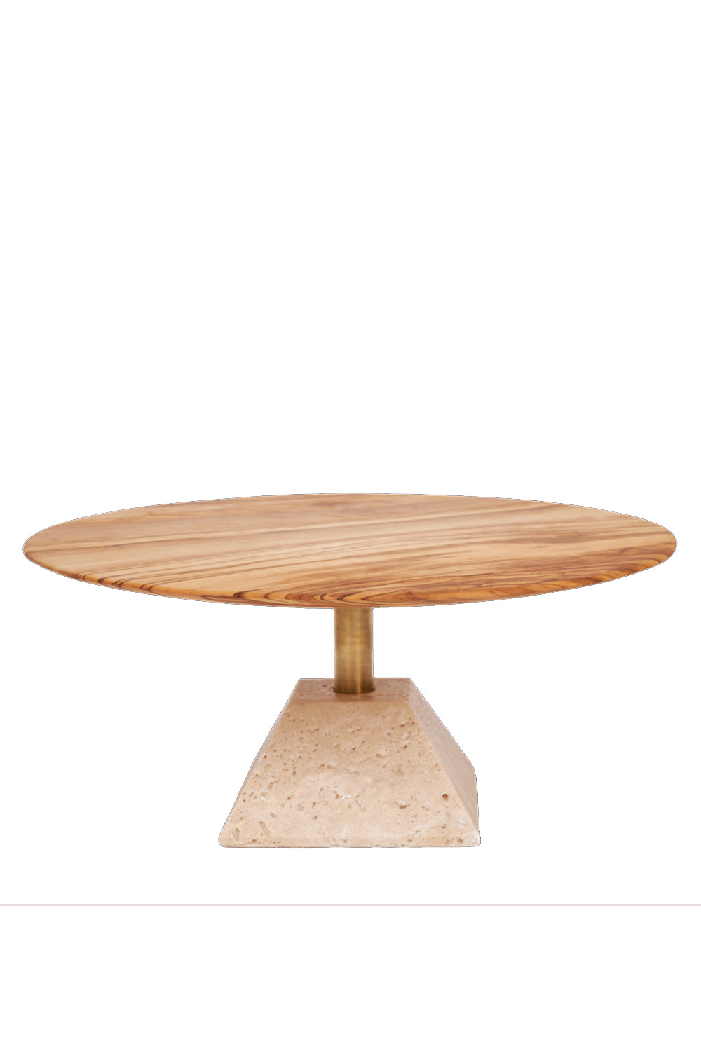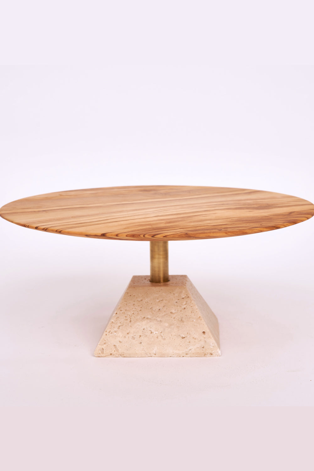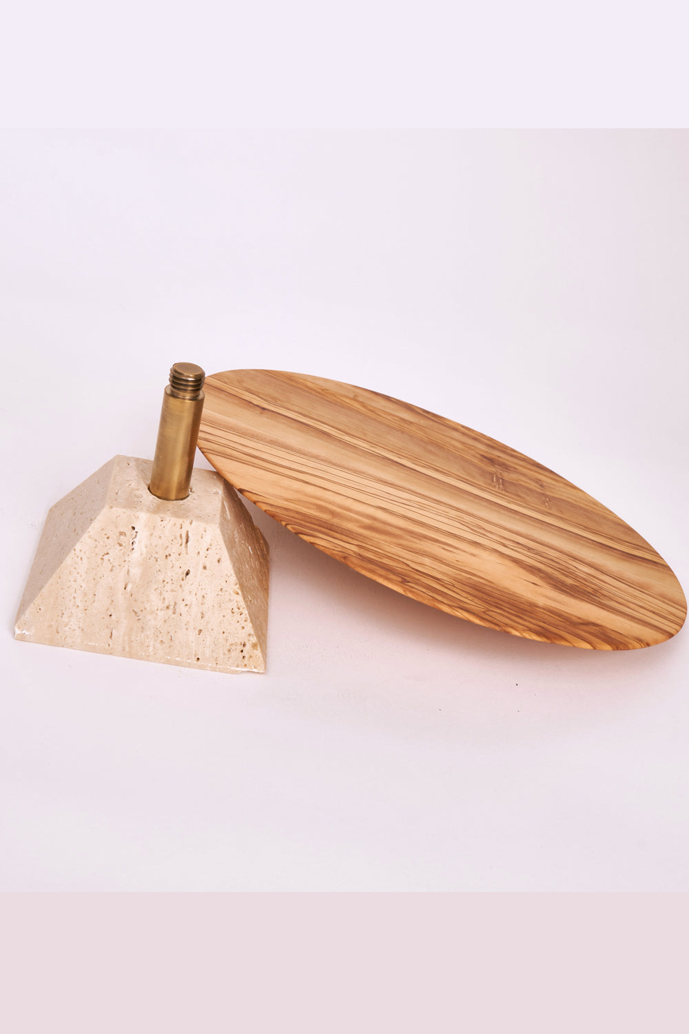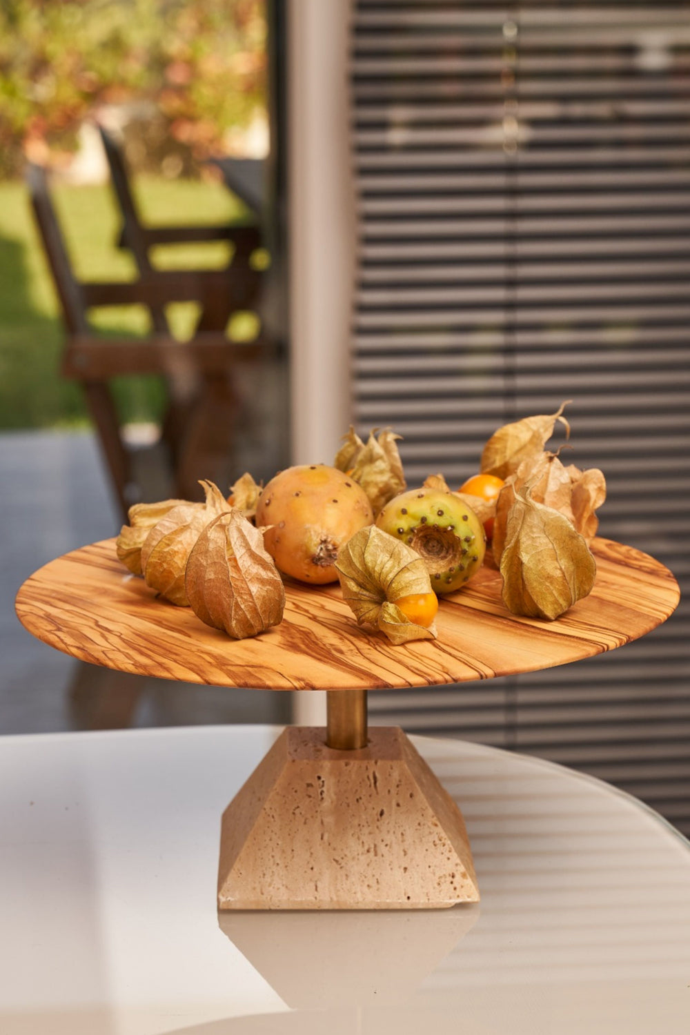 Yüksek Kalite Zeytin Agacı Servis Sunumluk, Traverten Mermer Ayak, Pirinc Govde Cubuk.