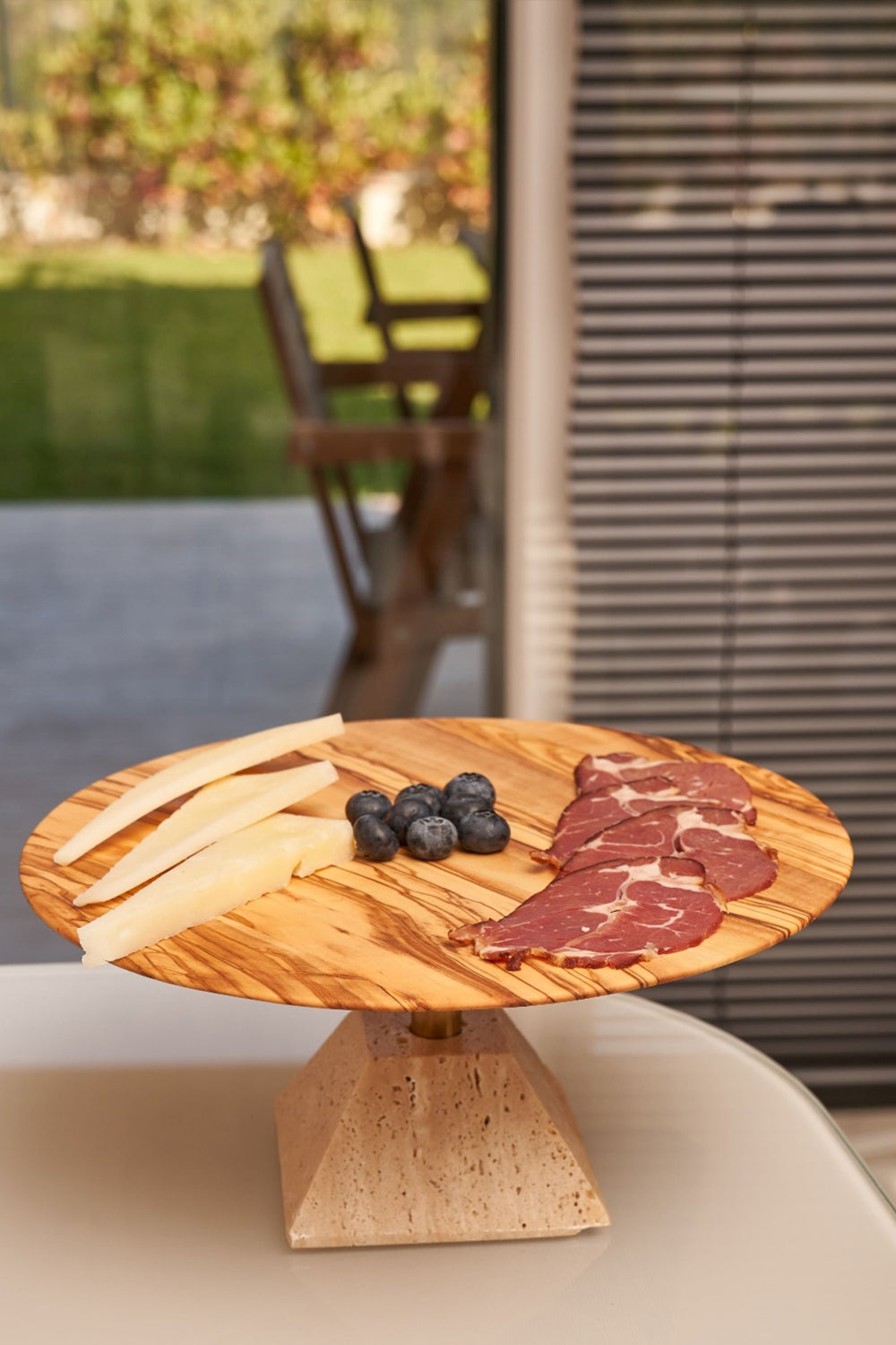 Bu zarif sunumluk, doğanın estetik ve işlevsellik ile buluştuğu en güzel örneklerden biridir. Dayanıklılığı ve eşsiz desenleriyle bilinen zeytin ağacından el işçiliği ile üretilmiştir. Her bir parça, zeytin ağacının kendine has dokusu sayesinde benzersizdir ve bulunduğu ortamda sofistike bir atmosfer yaratır.