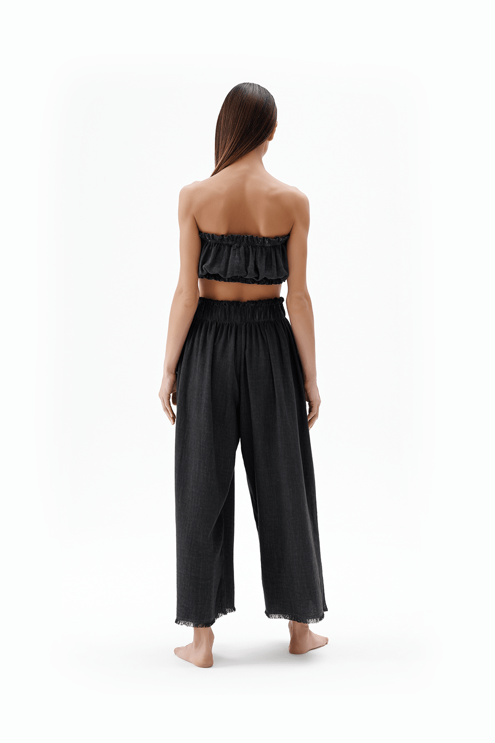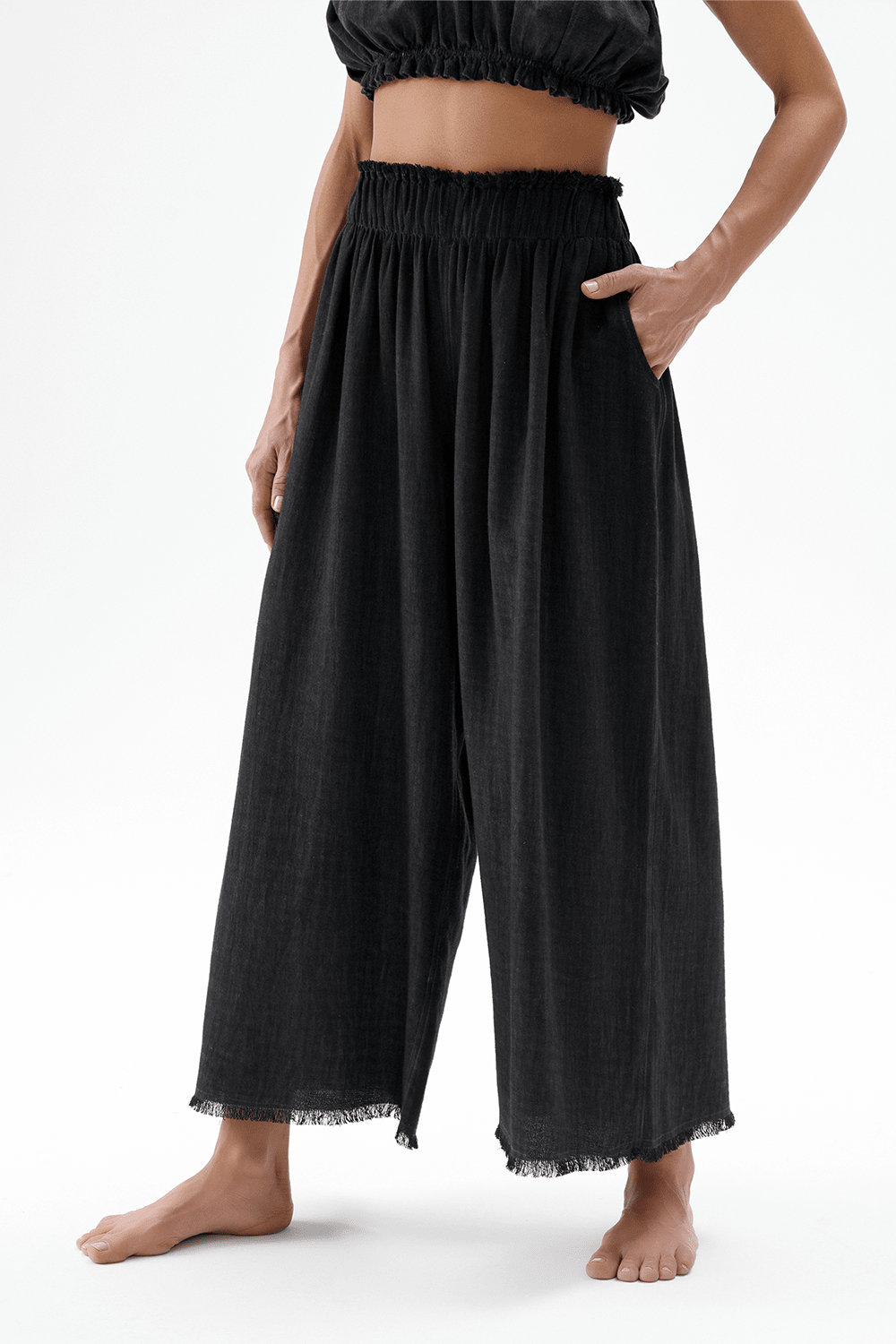 Doğal keten ve pamuk lifleriyle harmanlanarak yavaş yavaş dokunan bu rahat kesim pantolon, her bedene uyum sağlayan bir yapıya sahiptir.