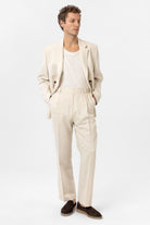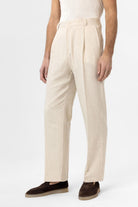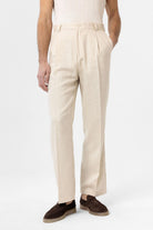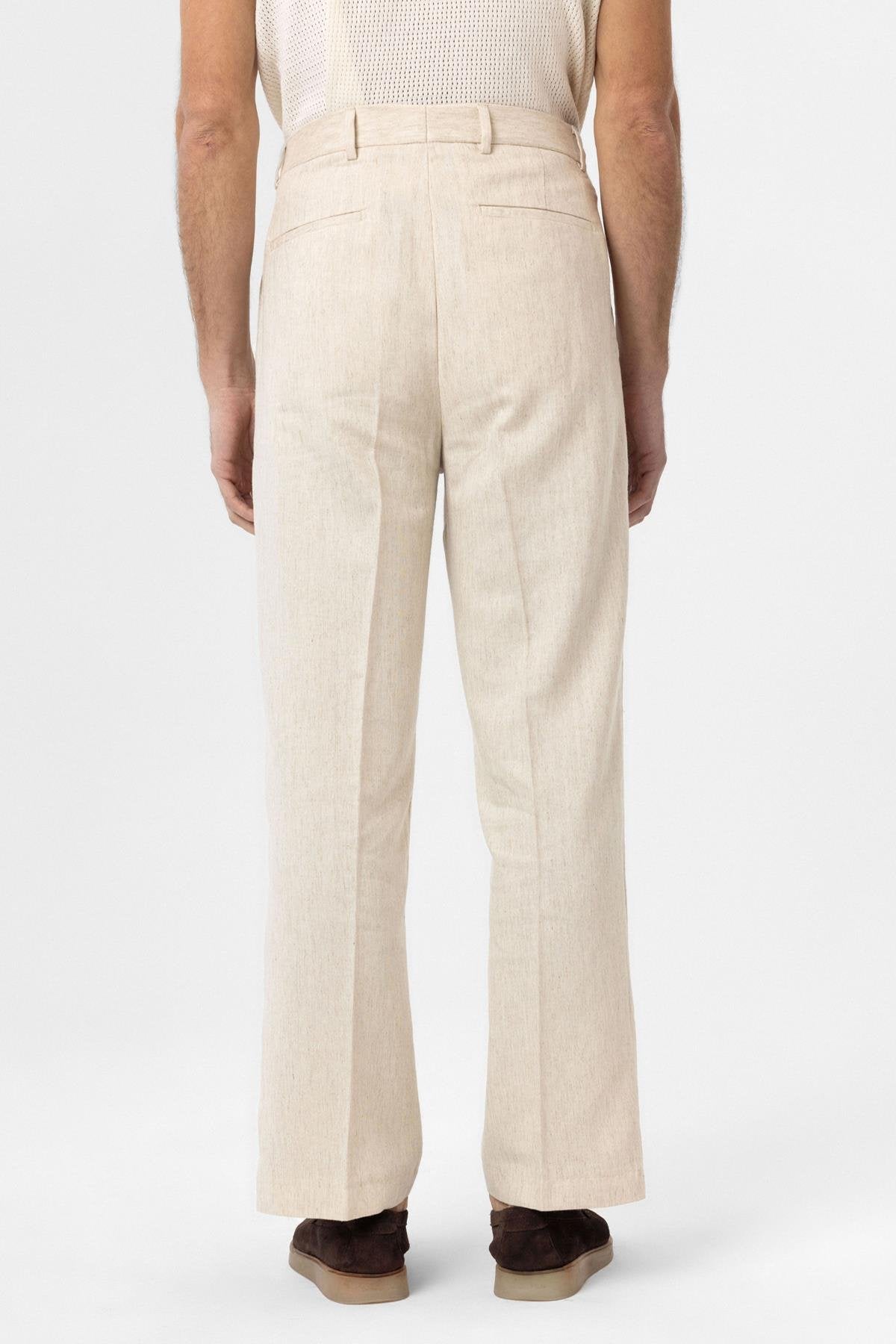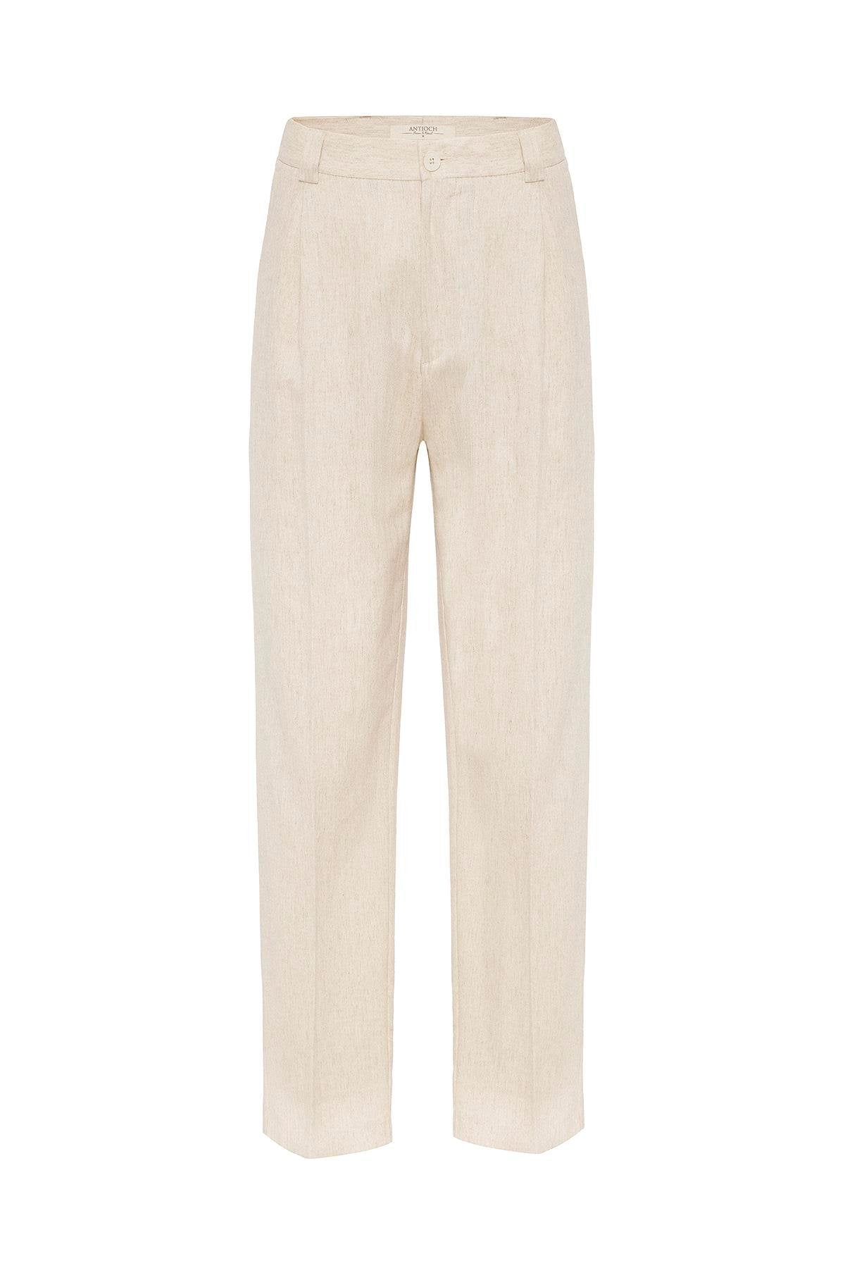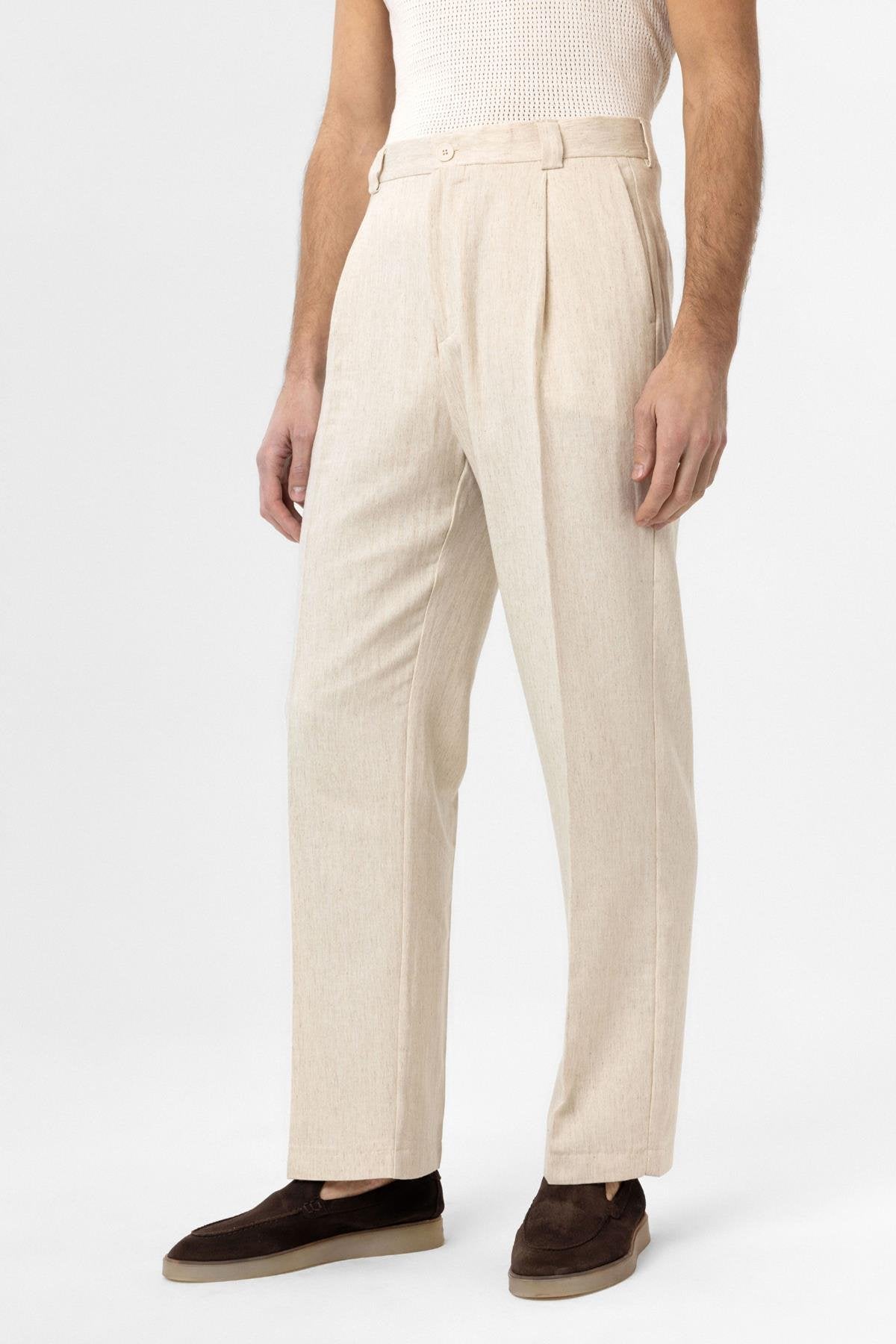 Ekru Yüksek Bel Keten Karışımlı Erkek Pantolon