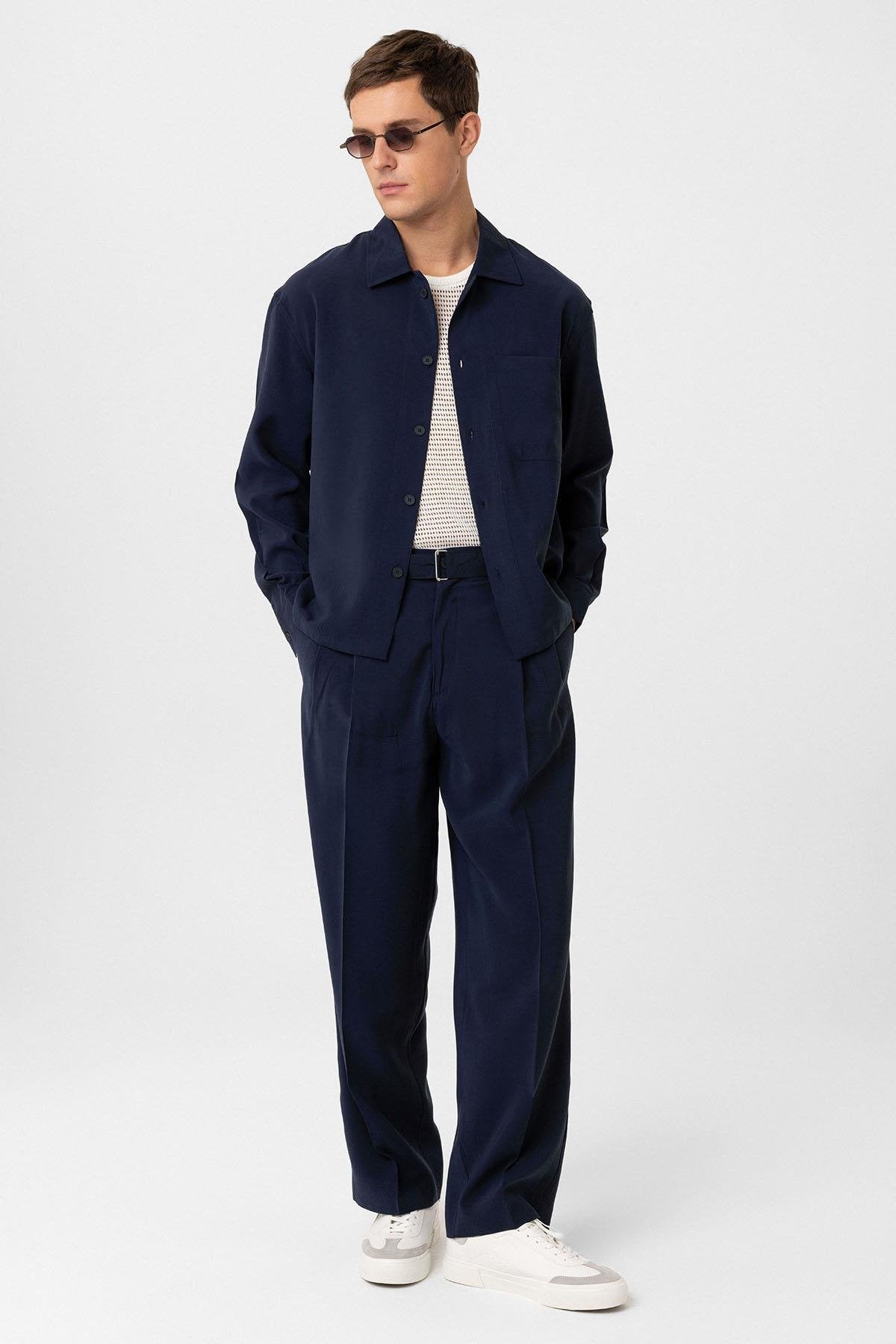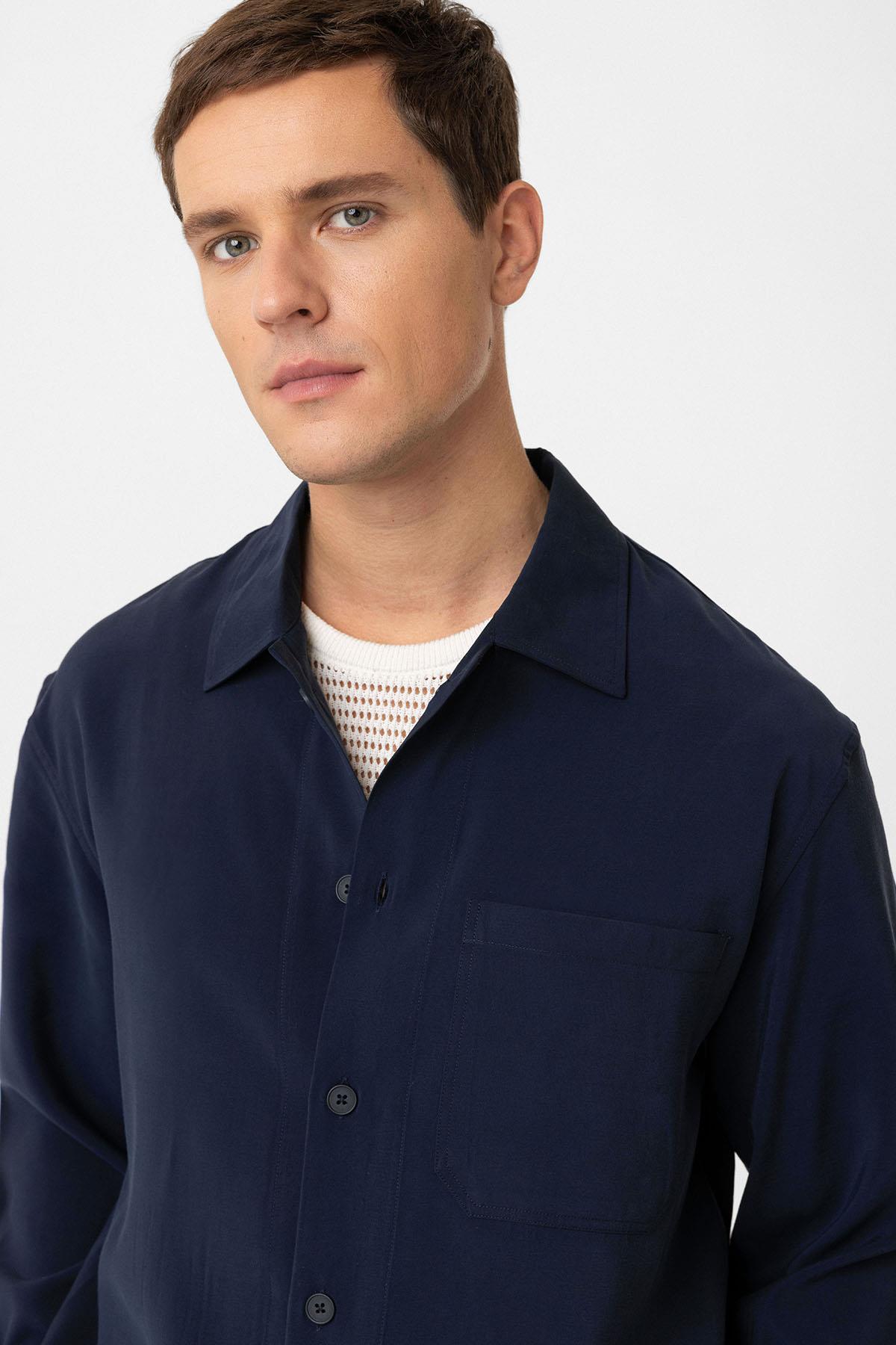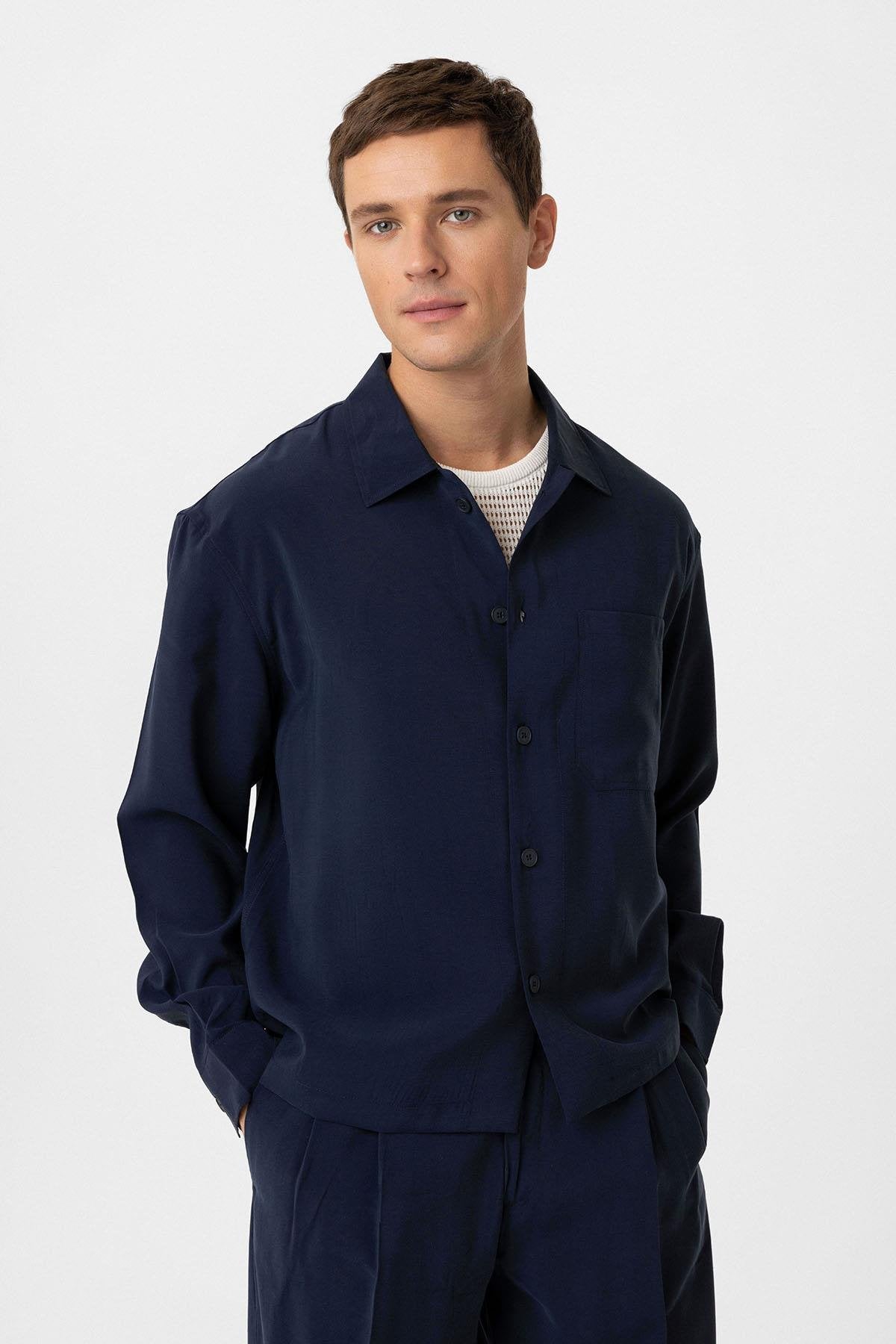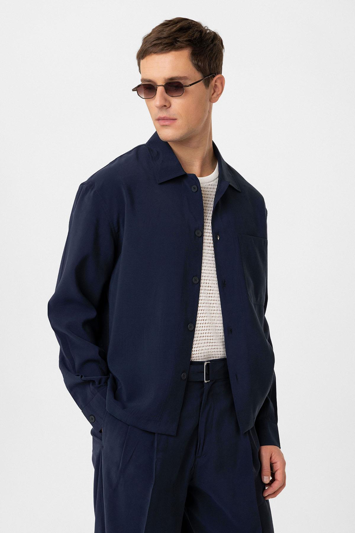 Lacivert Relax Fit Modal Kumaş Erkek Gömlek