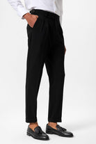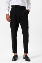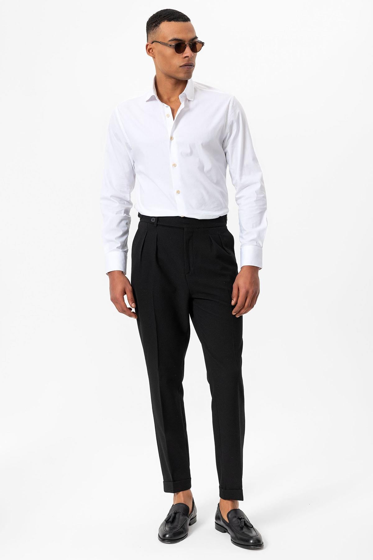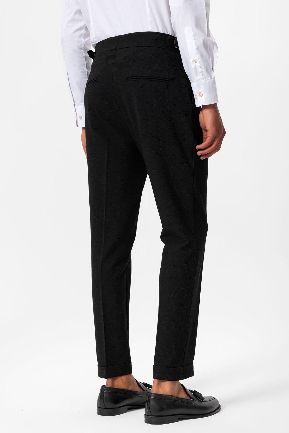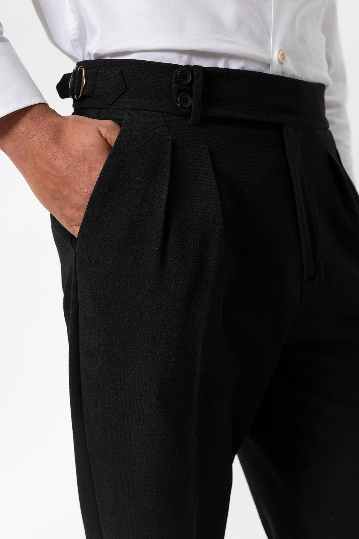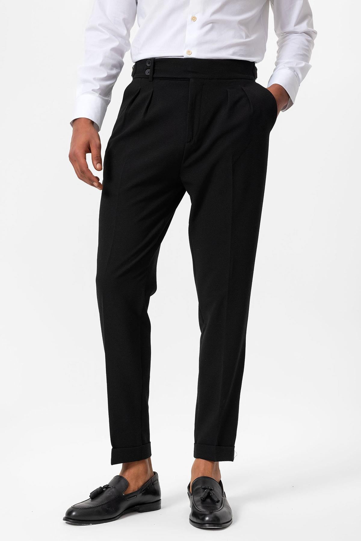 Siyah Yüksek Bel Pileli Dokulu Erkek Pantolon