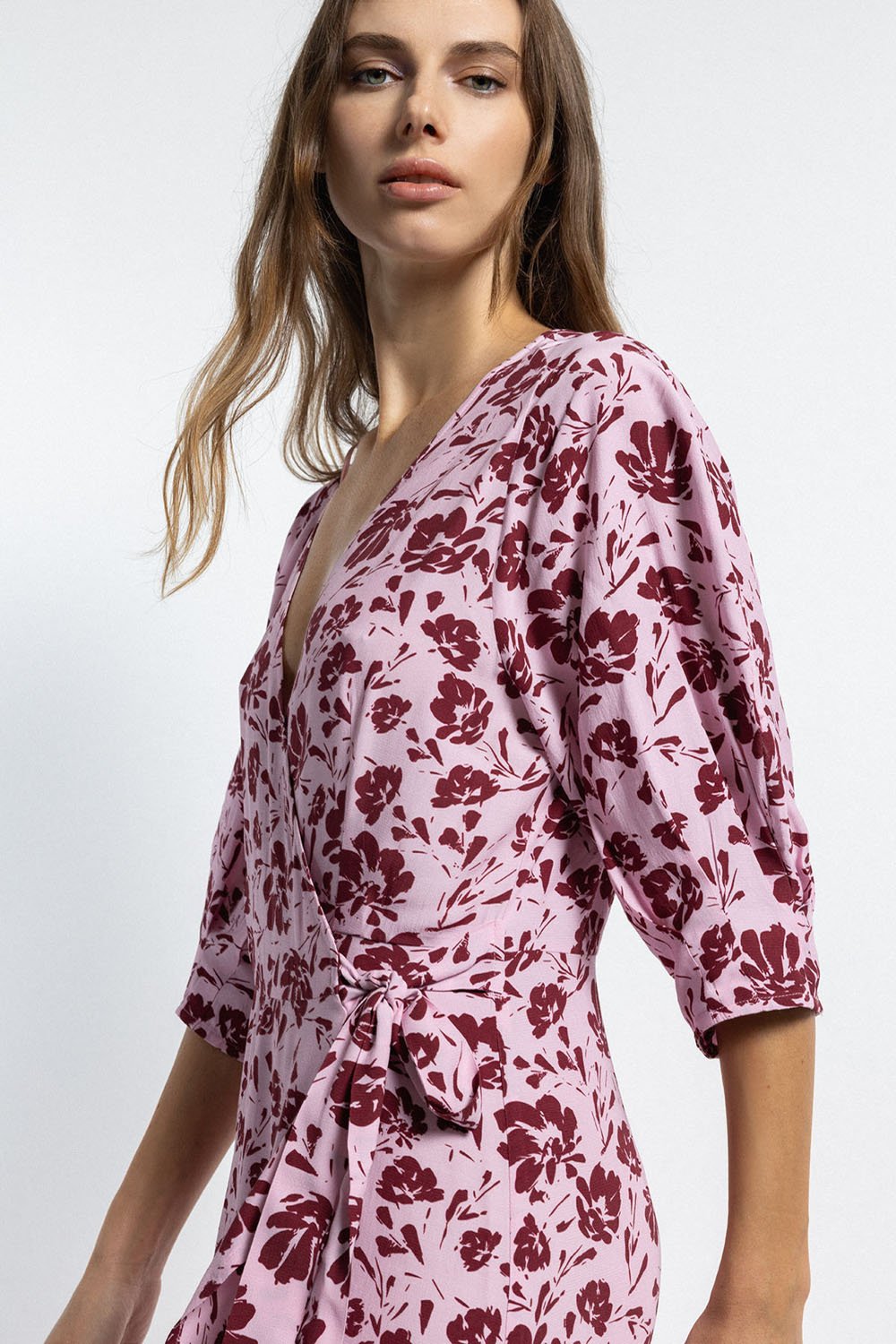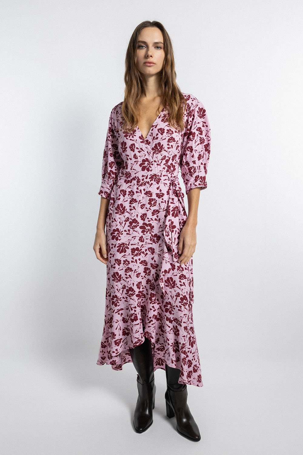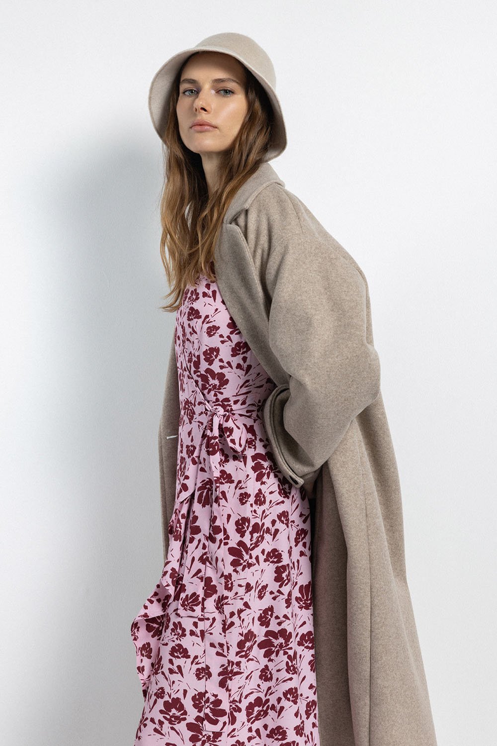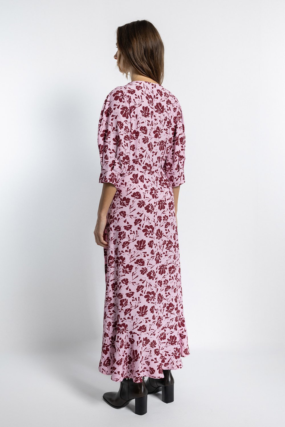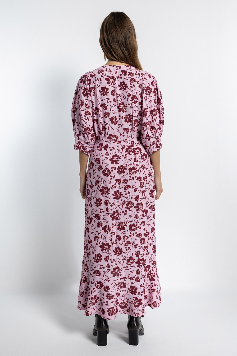 Hacimli, uzun dirsek hizasındaki kollar görünümü tamamlayarak elbiseye romantik ve zamansız bir çekicilik kazandırır.