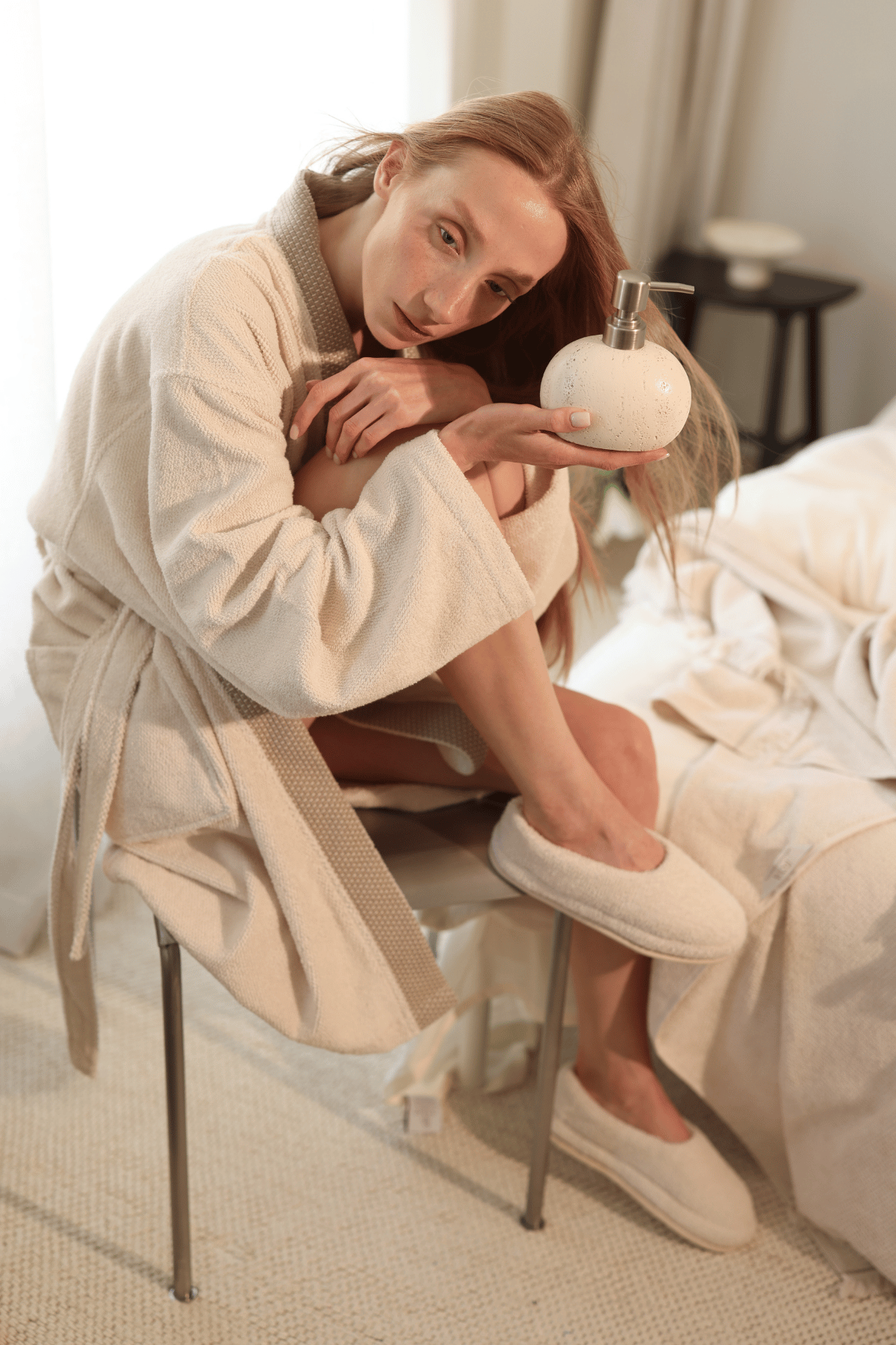 Doğal travertenden ilham alan pirinç dokulu havlu, banyonuza sıcak ve şık bir hava katar. Yumuşacık dokusu her kullanımda sizi dinginlik ve huzur dolu bir ana taşırken, sade tasarımıyla banyonuza zamansız bir şıklık kazandırır.