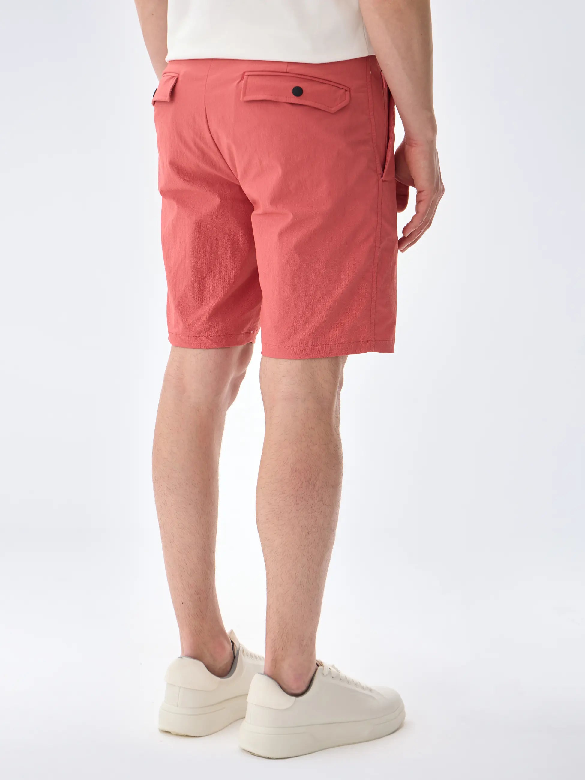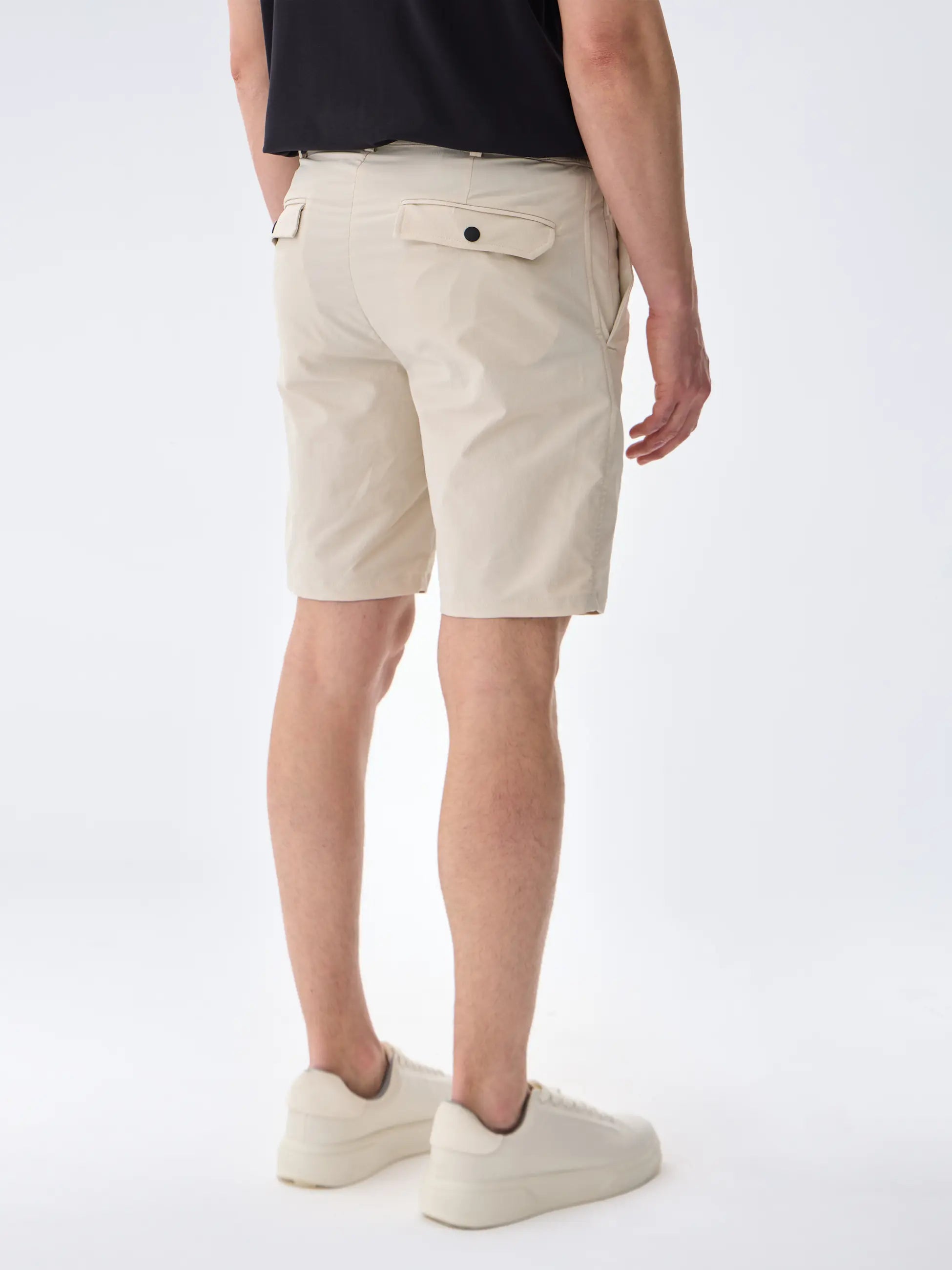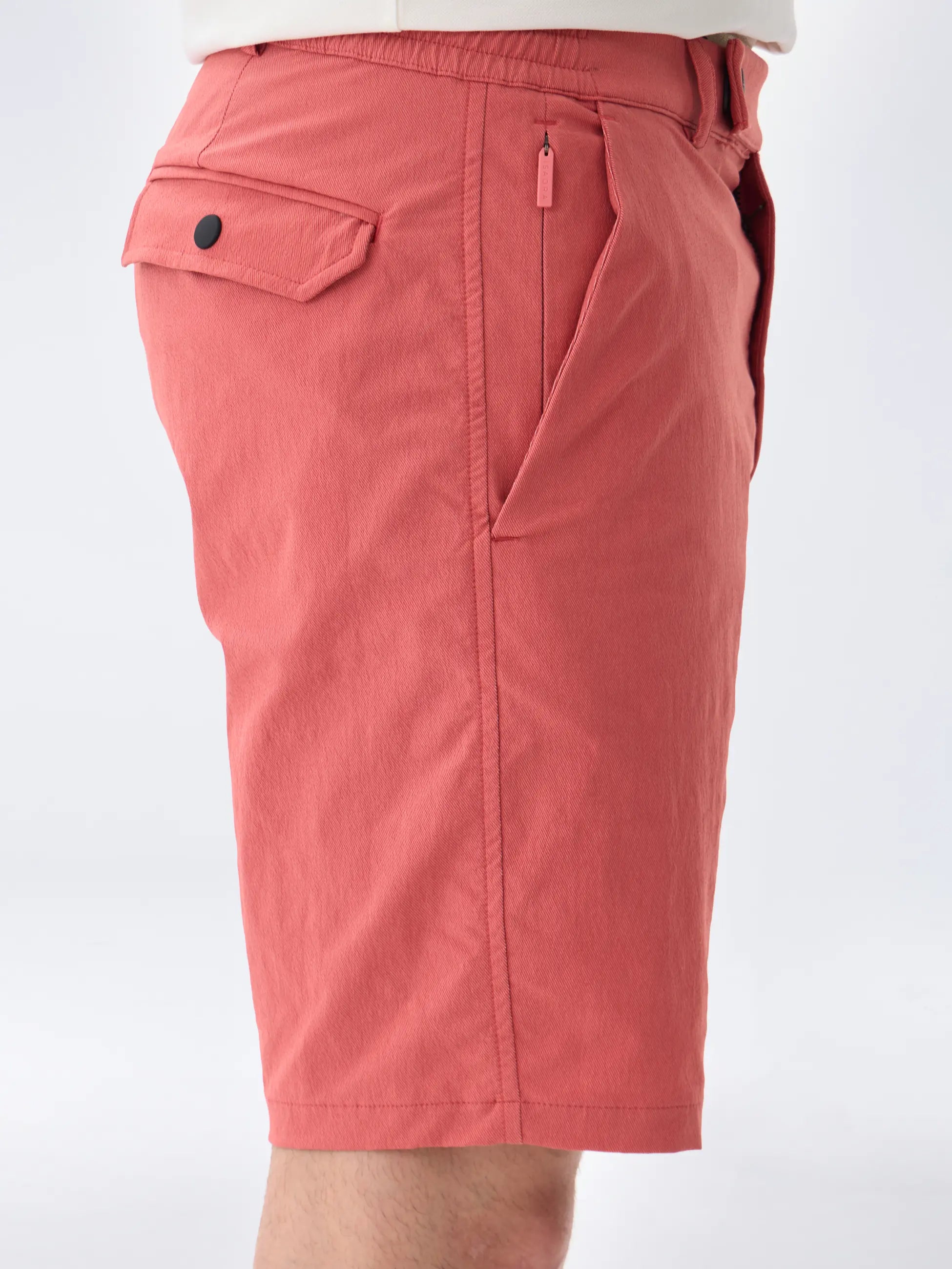 Urban Escape Short,yazın dinamik temposuna mükemmel uyum sağlayan çağdaş bir tasarım. Hafifkırışık dokulu krinkıl/ buruşuk kumaşı, doğal bir görünüm sunarken nefesalabilen yapısıyla gün boyu konfor vaat ediyor. Bel bölgesindeki iki yandabulunan esnek bel lastikleri tam hareket serbestliği sunarken, ön kısımdakikanca ve çıtçıt kapatma sistemi şıklığından ödün vermeyen dengeli bir görünümsunuyor.