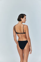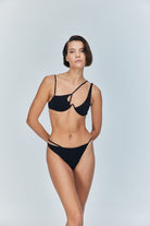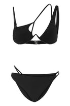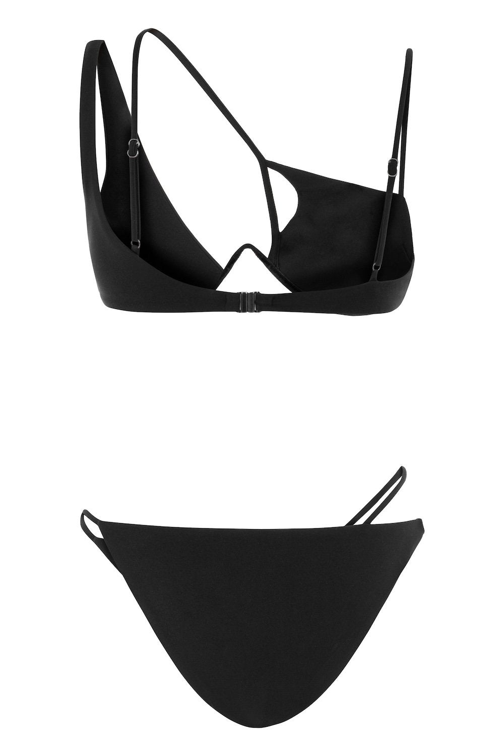 Bikini top make you feel eye catching. Unique designed asymmetric shoulder cross strap adorned with cut out. Also includes adjustable straps that provide a customised fit. Picture yourself on a yatch wearing this exclusive bikini.bikini bottom features asymmetric straps for added style. Whether you are lounging by the pool or taking a dip in the sea this unique piece make you feel confident and glamorous.
