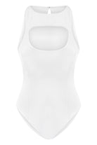 Inspired by the self assured Jendue woman the bodysuit exudes sophistication. Featuring chic cut out detailing, it offers a flattering fit. Adorned with a shell fabric buttoned back teardrop closure. Presented in classic white, this versatile piece effortlessly elevates any ensemble
