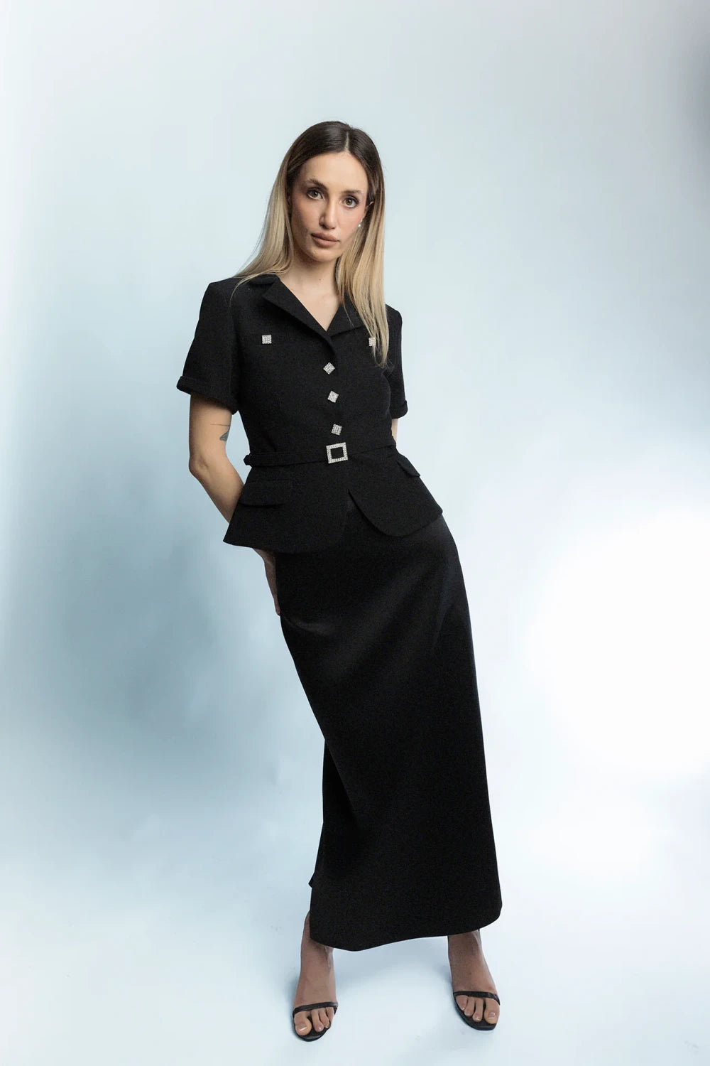 Zamansız asaletin ve güçlü duruşun simgesi: Elizabeth blazer ceket. Klasik siyahın asaletiyle buluşan bu tasarım, özel günlerde sofistike ve çarpıcı bir görünüm sunar.