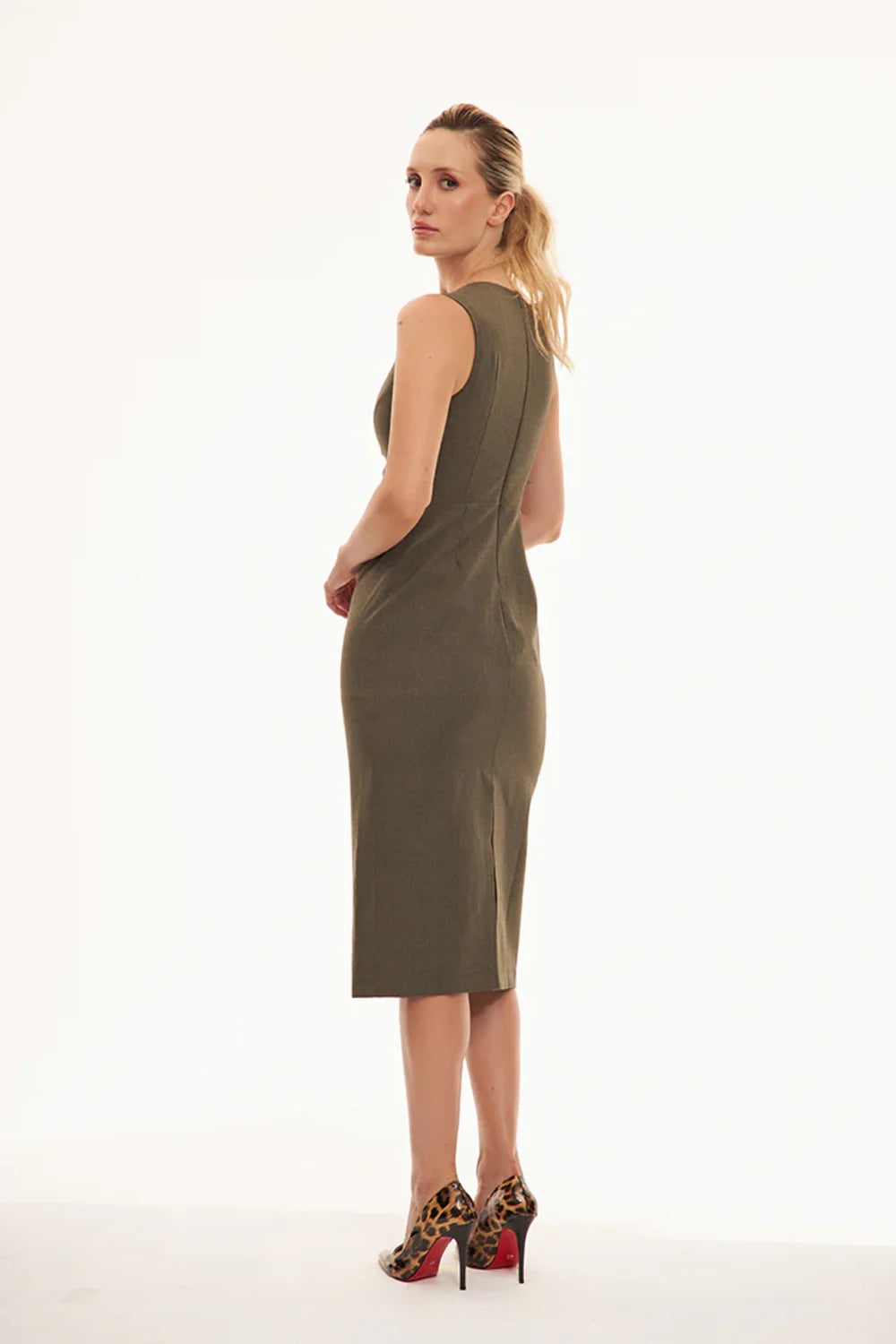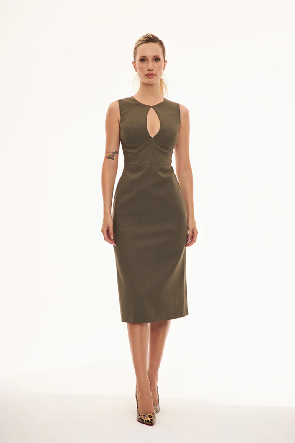 Bu şık ve modern elbise, üst göğüs kısmındaki pencere detaylı dekoltesi ile öne çıkıyor. Midi boy kesimi ile zarif bir siluet oluşturan bu elbise, arkadaki hafif yırtmaç detayı ile her adımda zarafet katıyor. İç göstermeyen ve astarlı yapısı ile güvenli ve rahat bir kullanım sunar. Polyviscose Portofino kumaşı, kaliteli ve dayanıklı bir doku sağlar, hem günlük hem de özel günlerde rahatlıkla kullanılabilir.