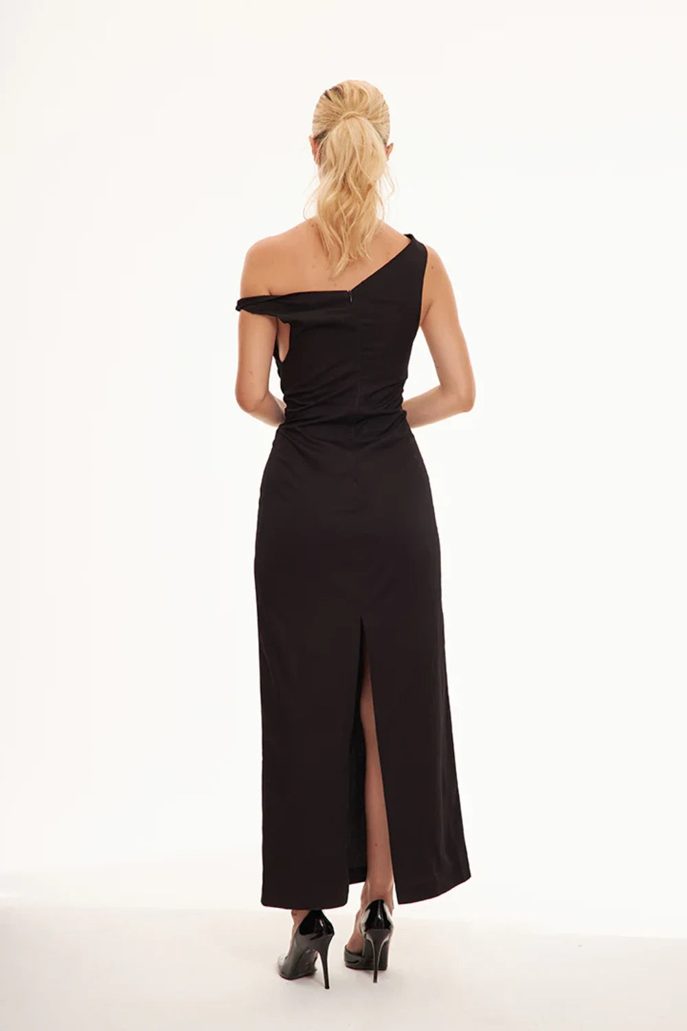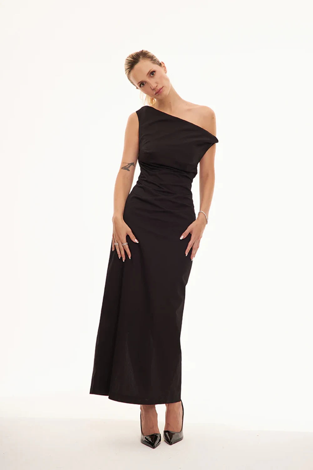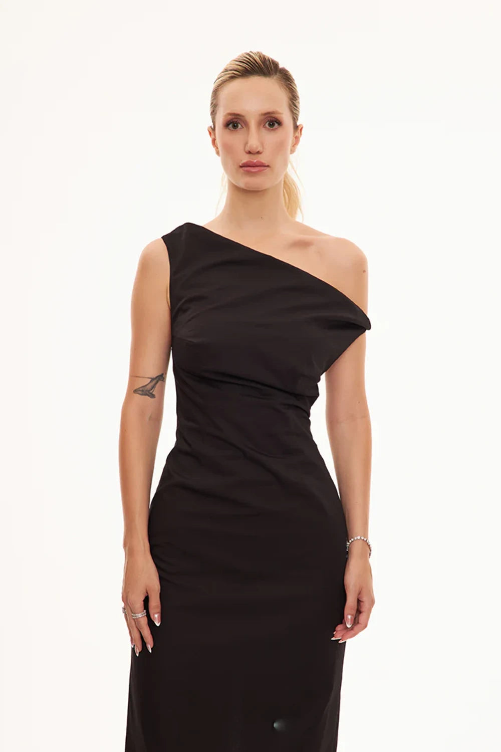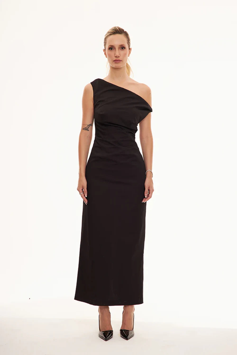 Bu zarif elbise, düşük omuz kesimi ve keten kumaşı ile rahatlık ve şıklığı bir araya getiriyor. Sırt kısmındaki hafif yırtmaç detayı, hareket özgürlüğü ve zarif bir dokunuş sağlar. İç göstermeyen astarlı yapısı ile güvenli ve rahat bir kullanım sunar. Sırt dekoltesindeki takı detayı görsel amaçlı kullanılmıştır ve ürüne dahil değildir.
