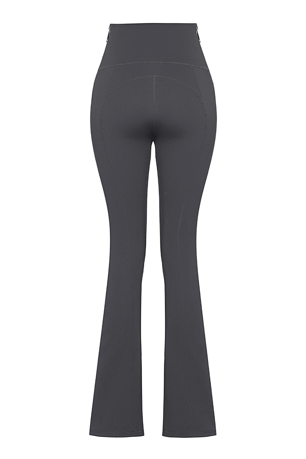 Yüksek bel tasarımıyla feminen siluet sunan flare paça tayt, yanlardan açılır fermuar detayları ve push up etkisi ile modern bir görünüm sağlar. %76 polyamid ve %24 elastane içeriği sayesinde esnek, rahat ve gün boyu konforlu kullanım sunar. Hem günlük hem de özel kombinler için ideal bir parçadır.