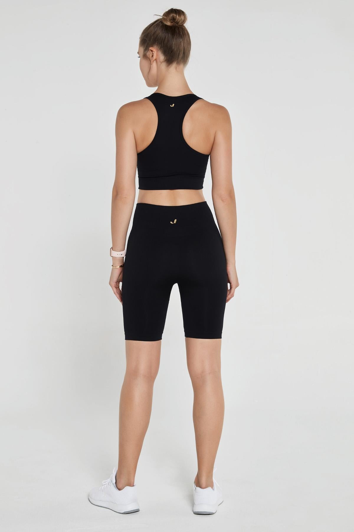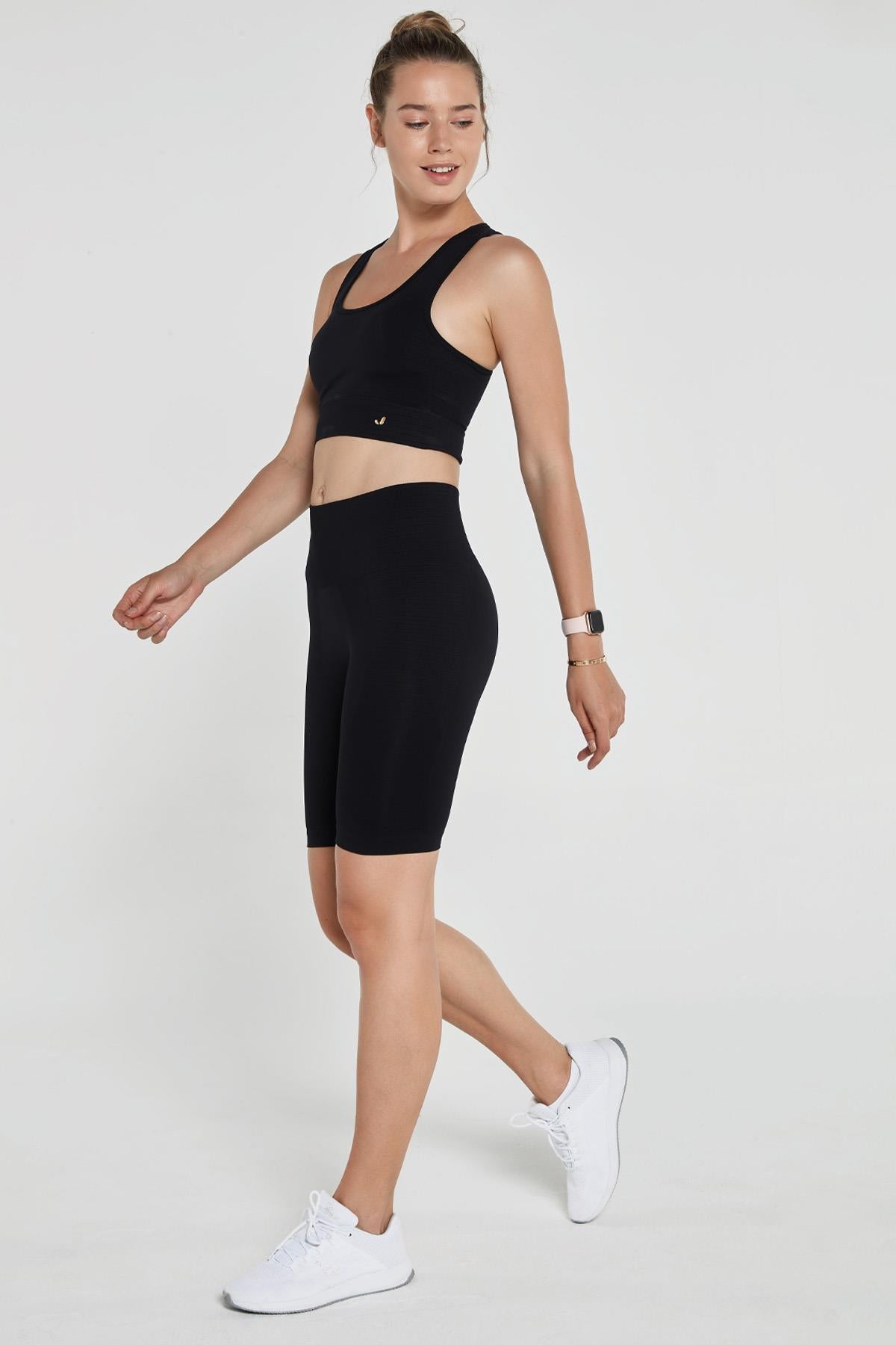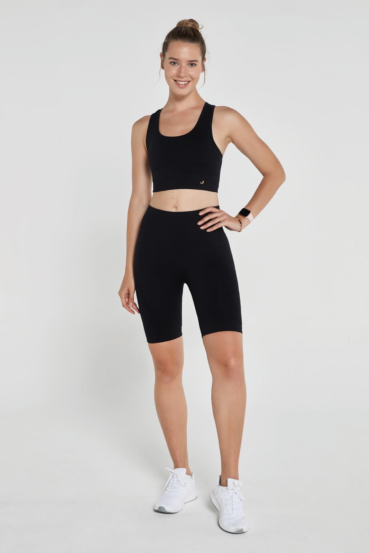 Hareket halindeyken vücutları desteklemek ve şekillendirmek için tasarlanmış üstün dikişsiz şort.