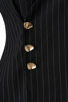 Siyah üzeri beyaz çizgili dokuma kumaşa gold renk düğme detaylı şık &günlük yelek pantalon takım.