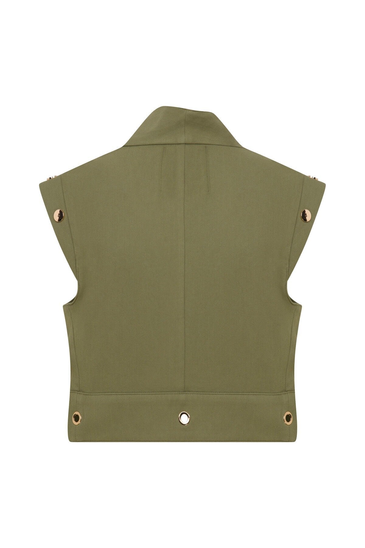 - Altın rengi fermuar ve düğme detayları