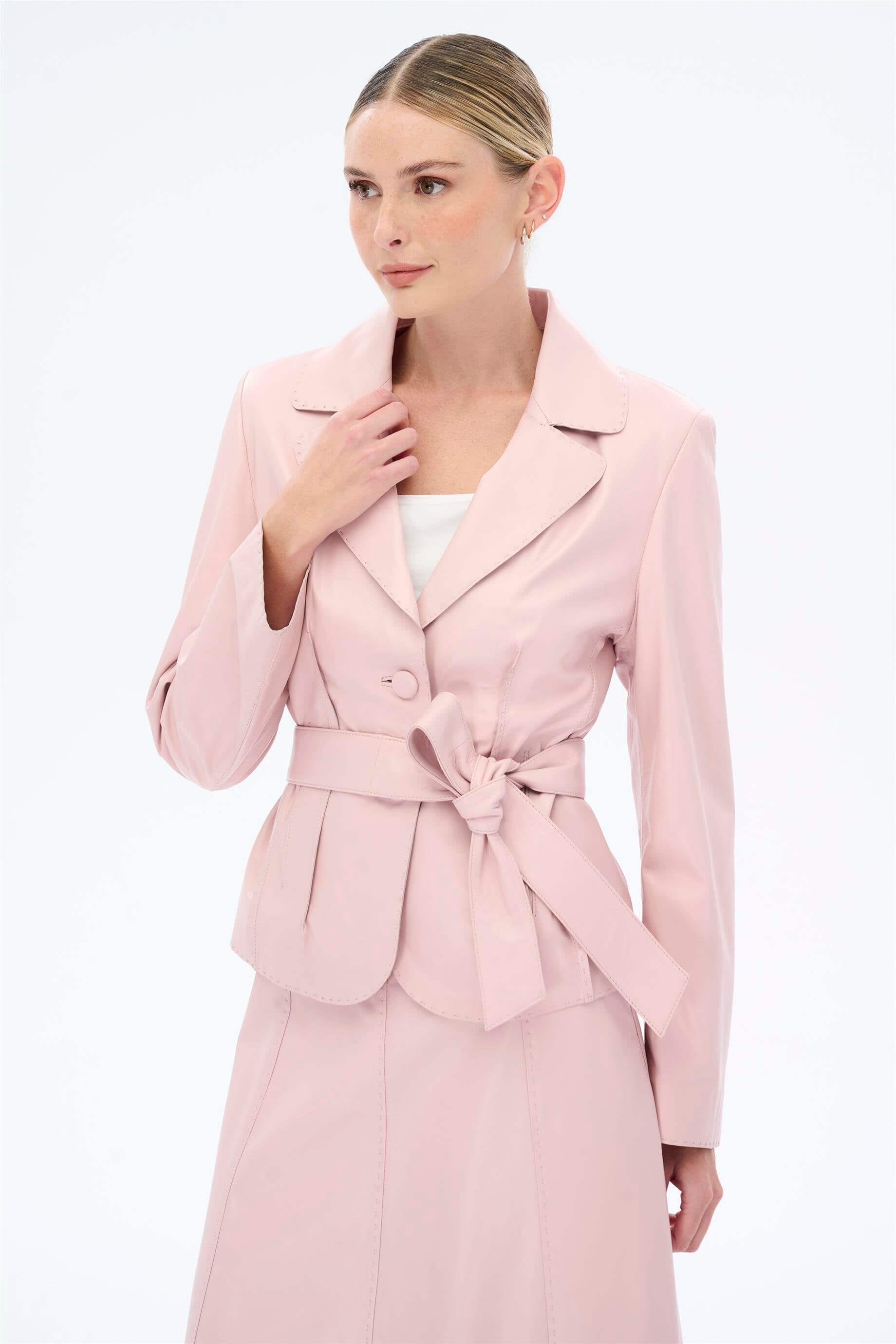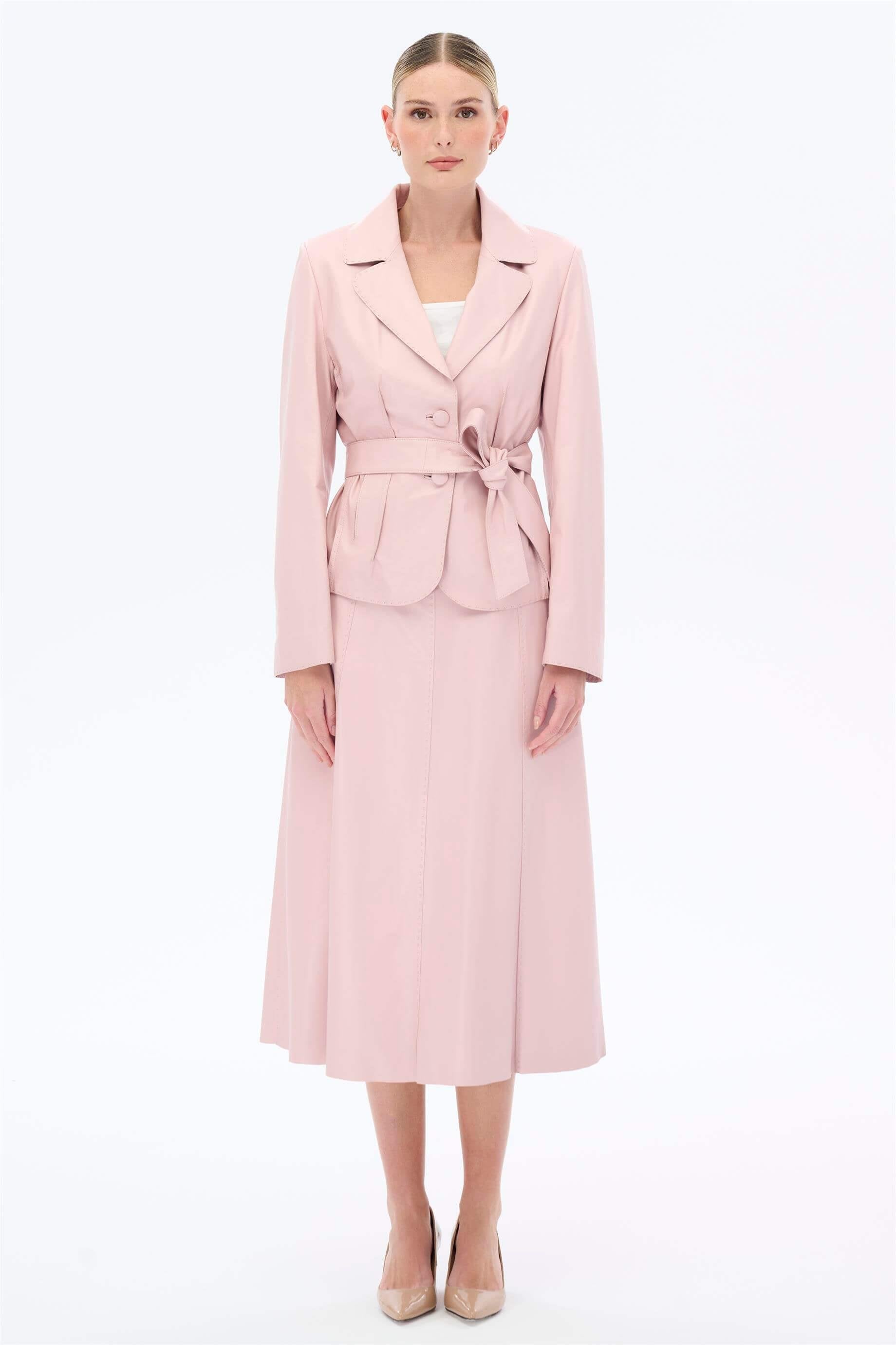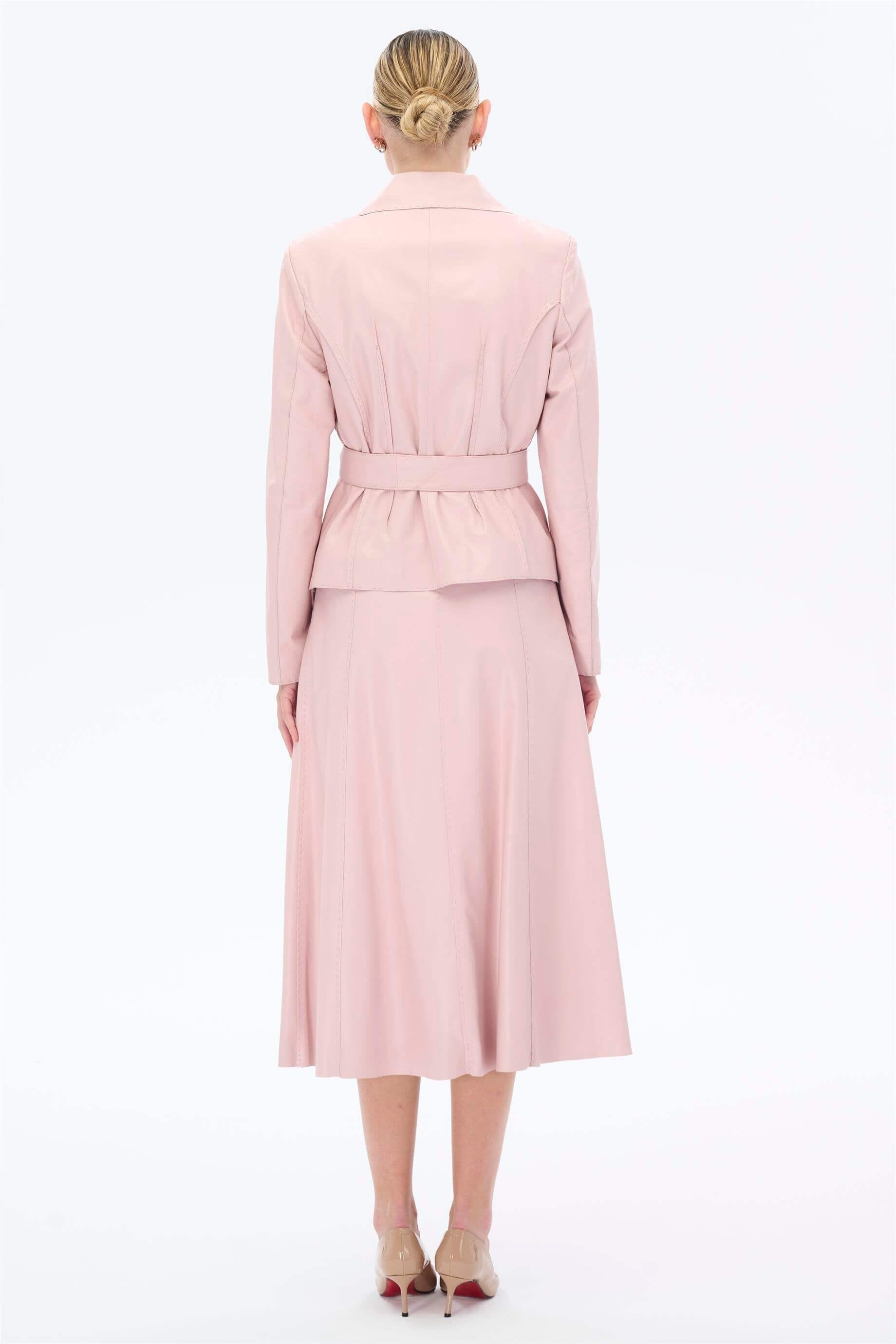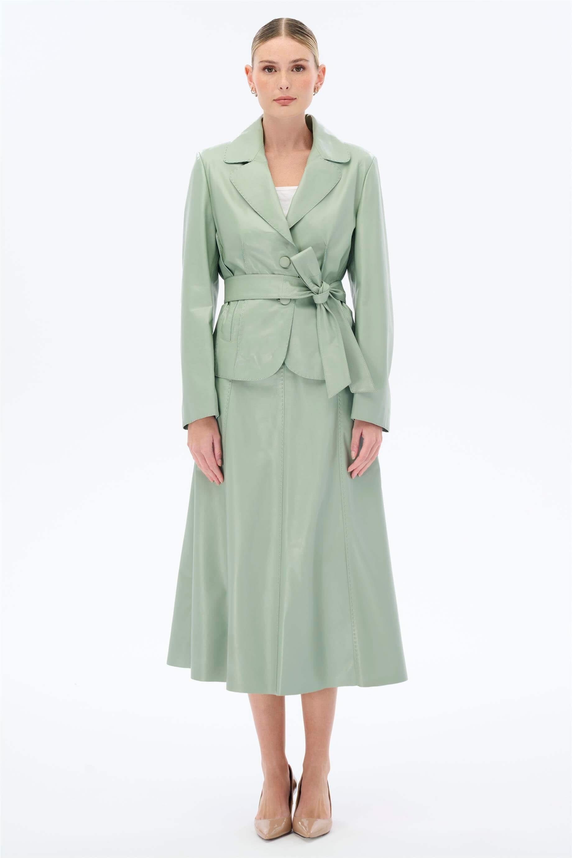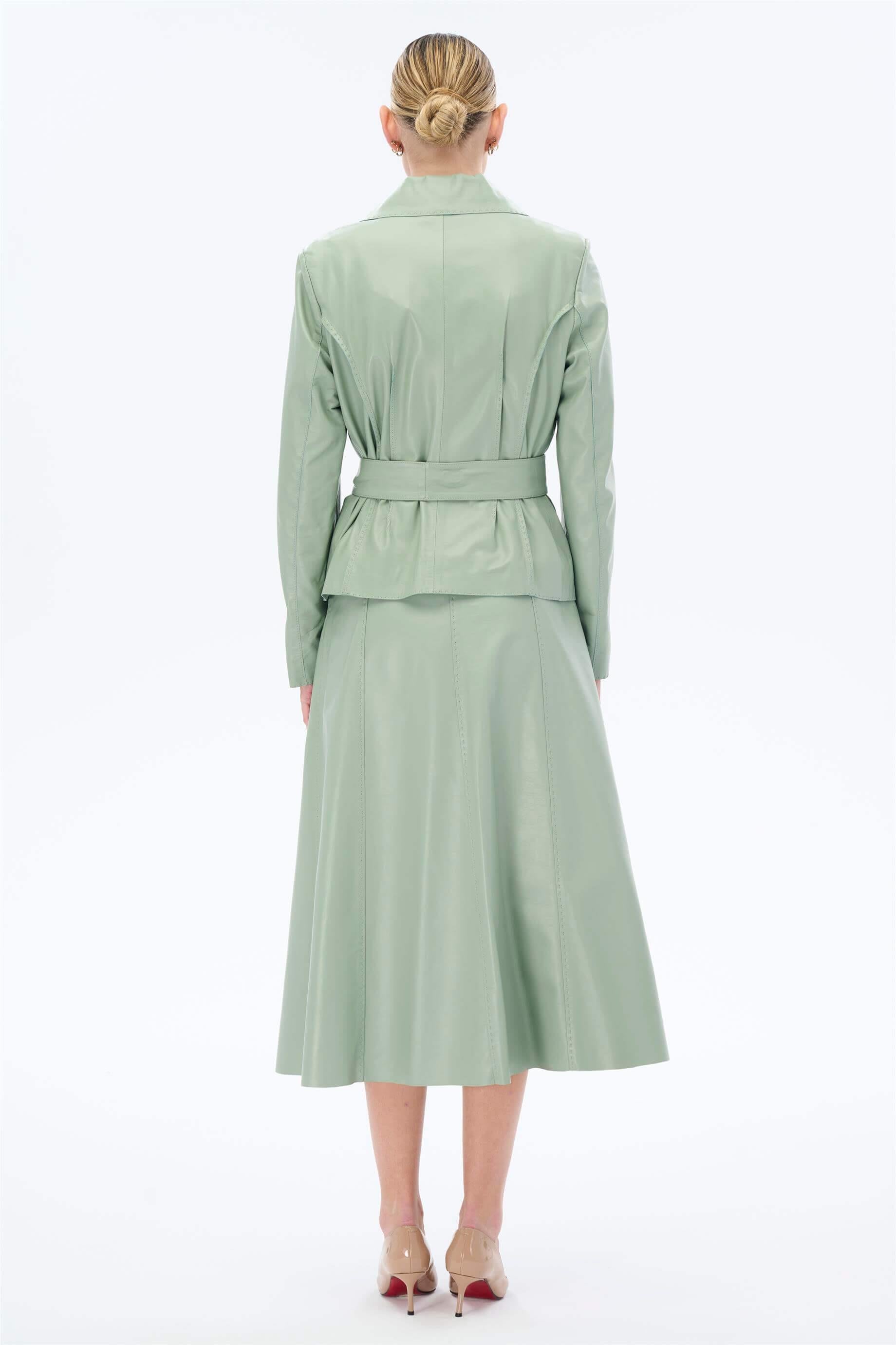- Ürün Açıklaması: A kesim deri etek ve üste oturan deri ceketi ile bu takım dolabınızın klasiklerinden olacak.