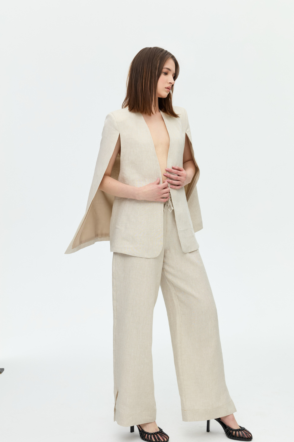 Karla Bej Keten Pelerin Takım