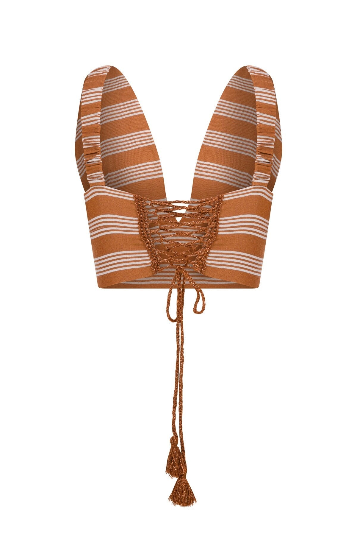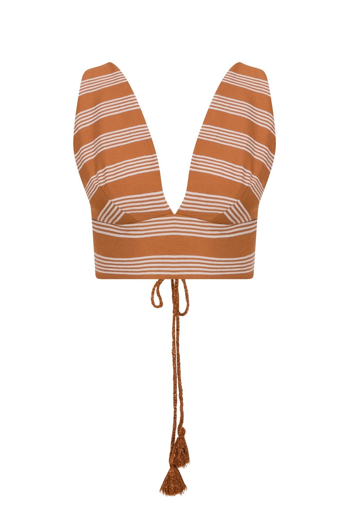İncecik dokusuyla ten üzerinde dans eden bu üst, derin V yaka tasarımıyla zarafeti cesur bir yorumla sunuyor. Belde taşlı görünüm, modern siluete duyusal bir ifade katarken, uzun büzgü ipleriyle hareketli bir görünüm yaratıyor. Yalın ama çarpıcı bir etki arayanlar için ideal bir tamamlayıcı.