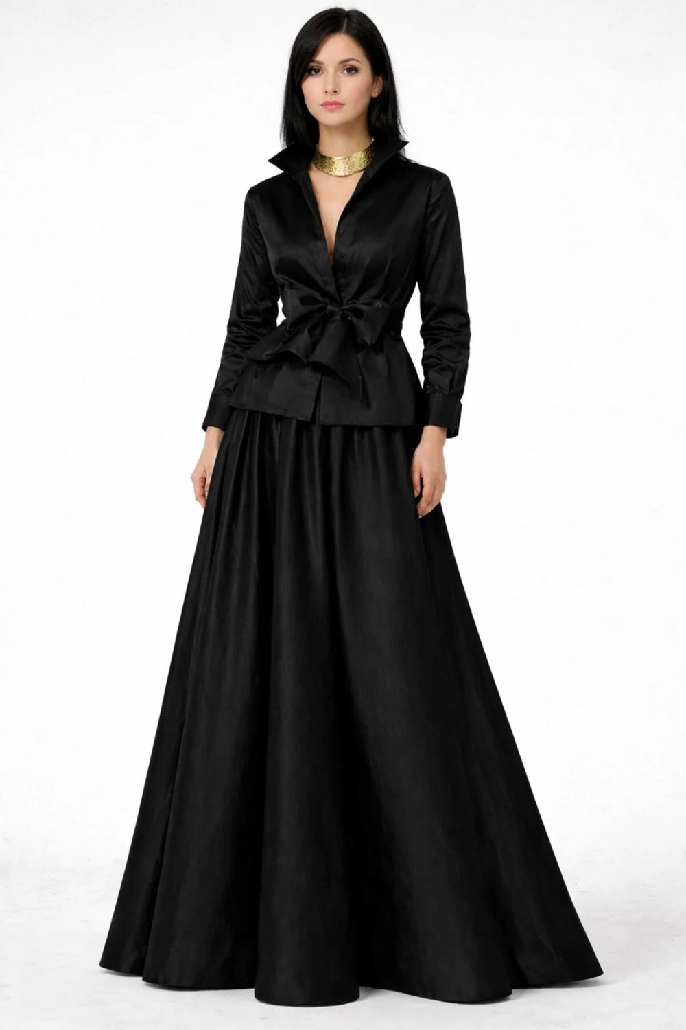Seyyar Kuşaklı Siyah Gömlek & Tam Daire Etek Siyah Alt&üst Takım