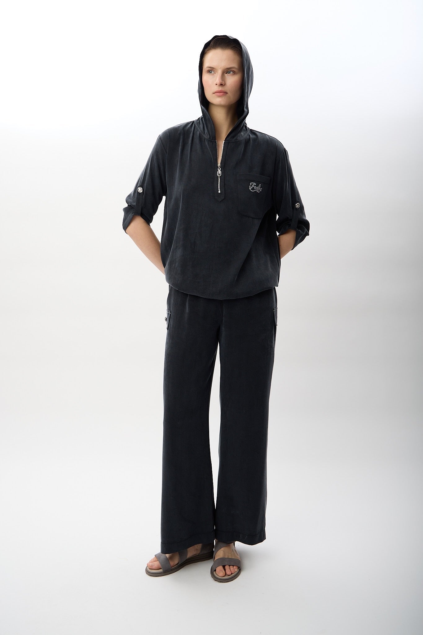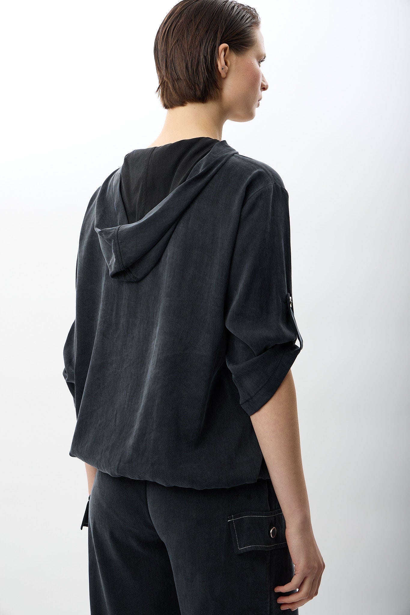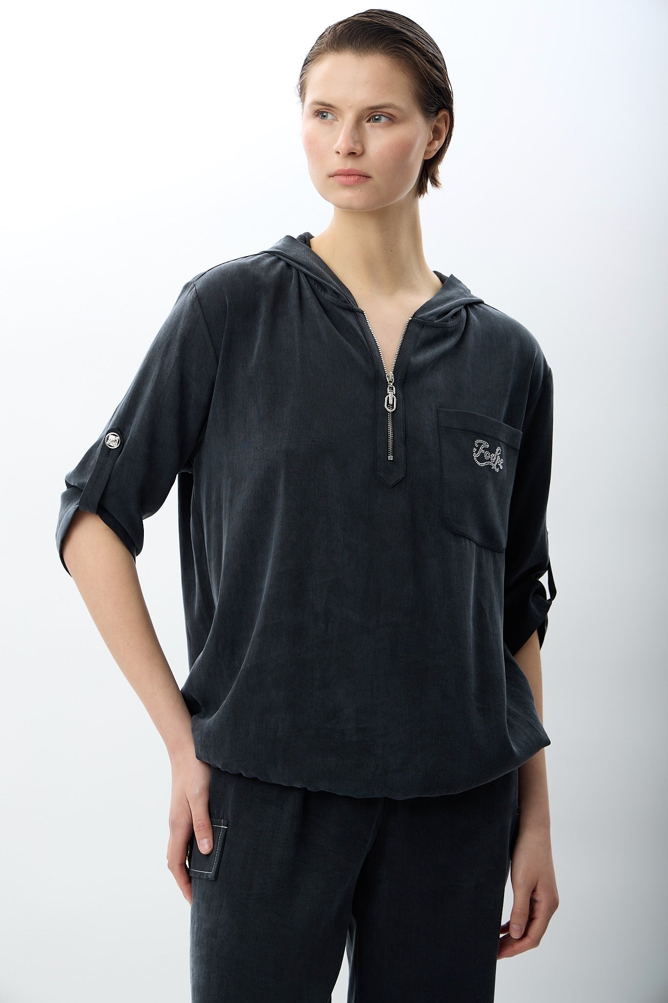Fonksiyonel şıklığı ön planda tutan bu kapüşonlu bluz, modern şehir yaşamı için ideal bir tamamlayıcıdır. %82 liyosel ve %18 PA içeriğiyle hafif, yumuşak dokulu ve nefes alabilen bir yapı sunar. Kapüşon detayı, hem stil hem de hava koşullarına karşı koruma sağlarken; cepli tasarımı günlük kullanımda pratiklik kazandırır. Fermuarlı kapama ve kemerli kol detayları sayesinde sportif bir görünümle birlikte güçlü bir stil vurgusu elde edilir. Bahar ve yaz mevsimlerinde rahatlıkla tercih edilebilir.