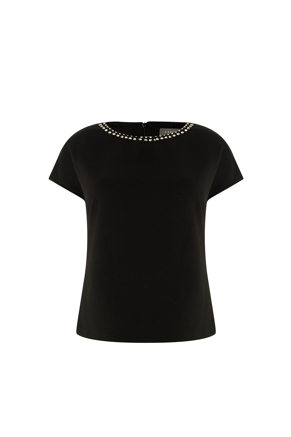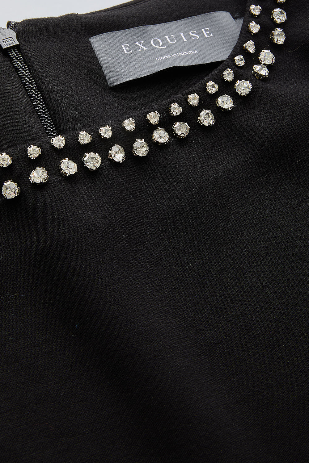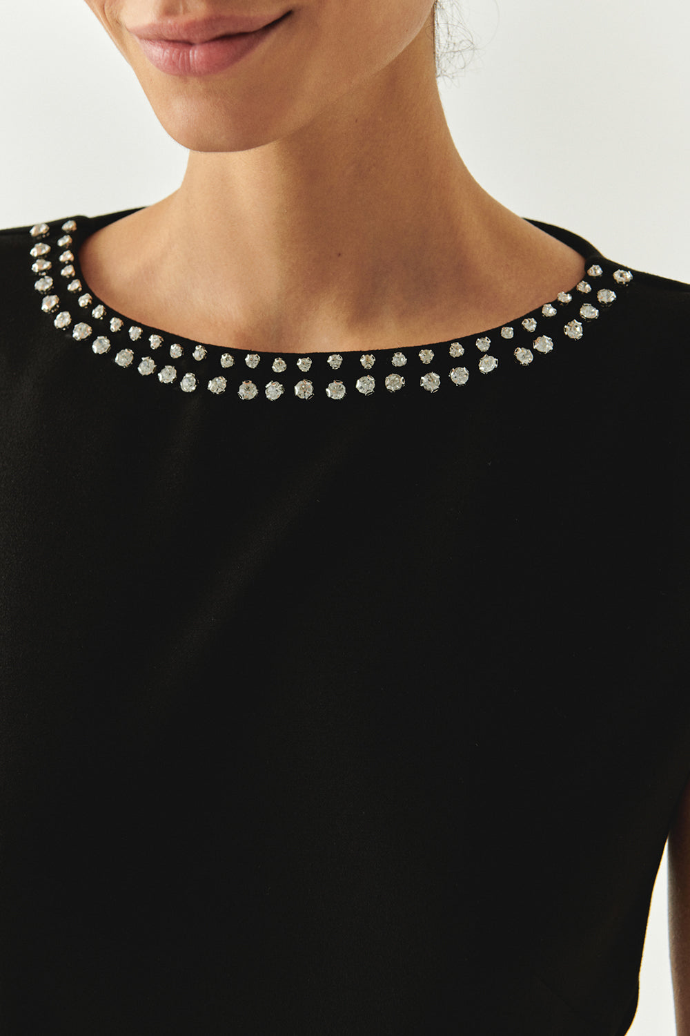 Taş Detaylı Kayık Yaka Kolsuz Regular Siyah Örme Bluz