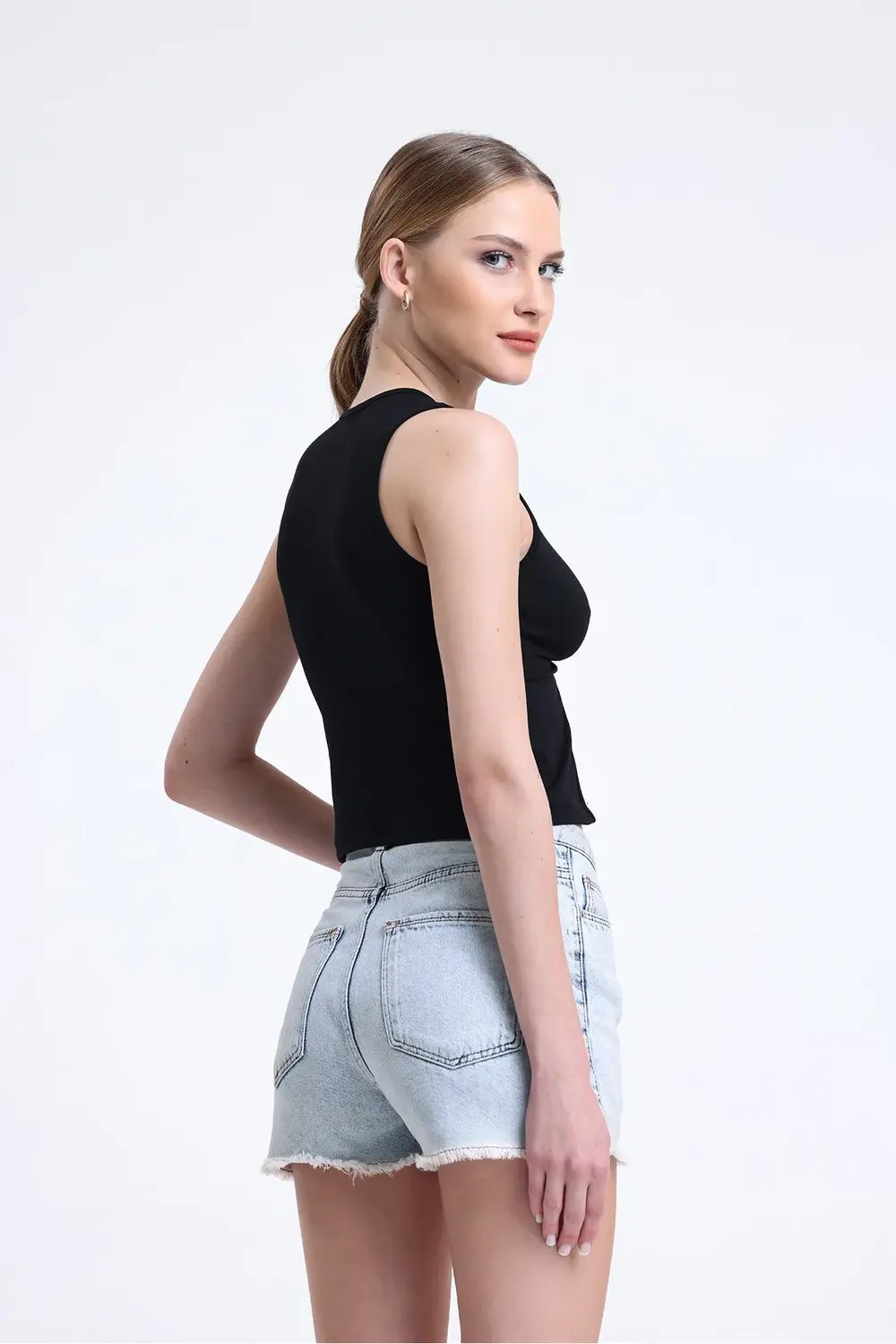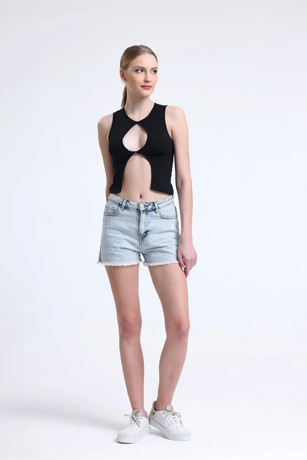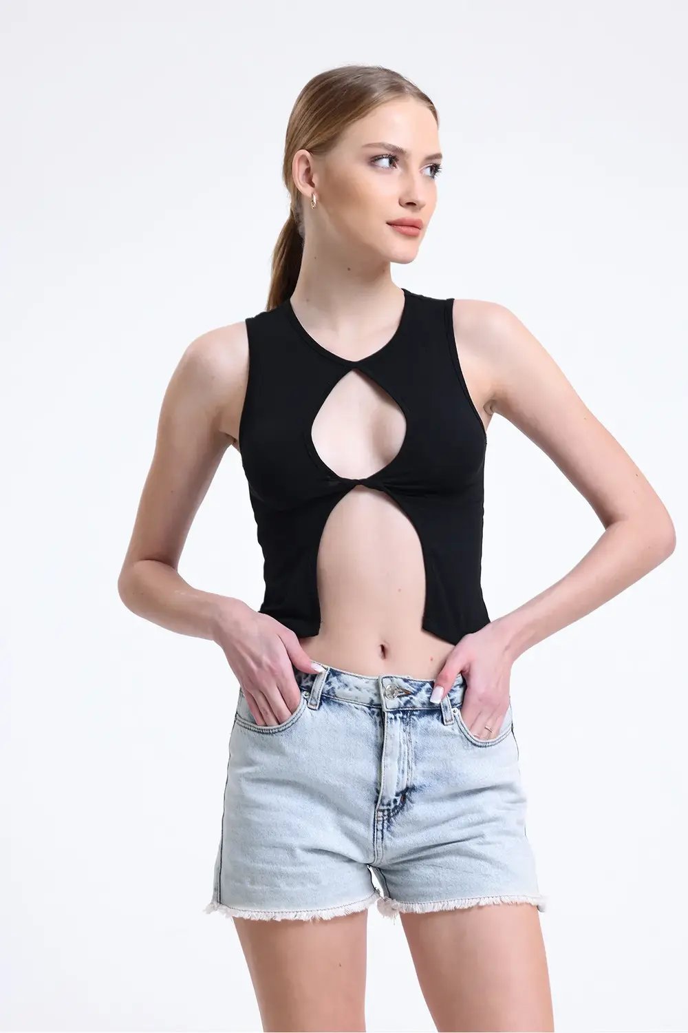 Göğüs Ve Göbek Dekolteli Kolsuz Bluz