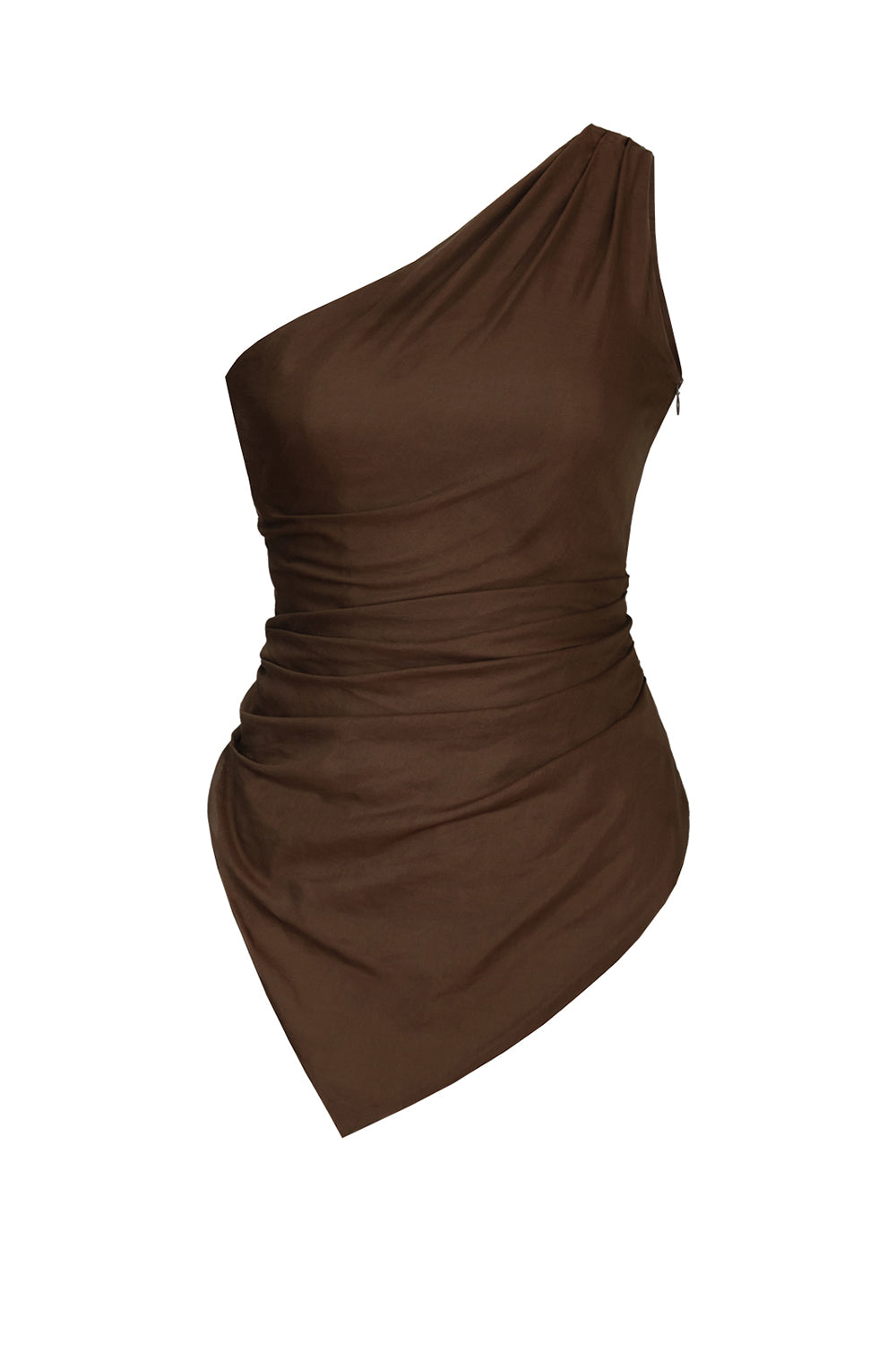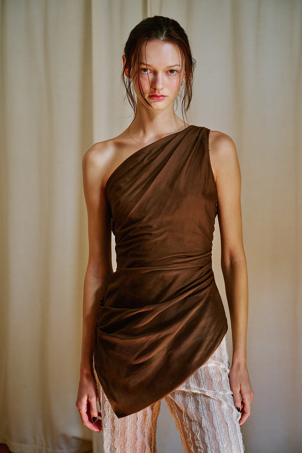 Silhouette Tek Omuzlu Drapeli Asimetrik Bluz