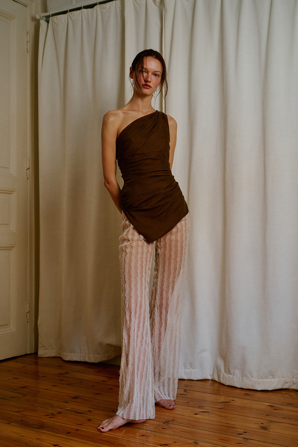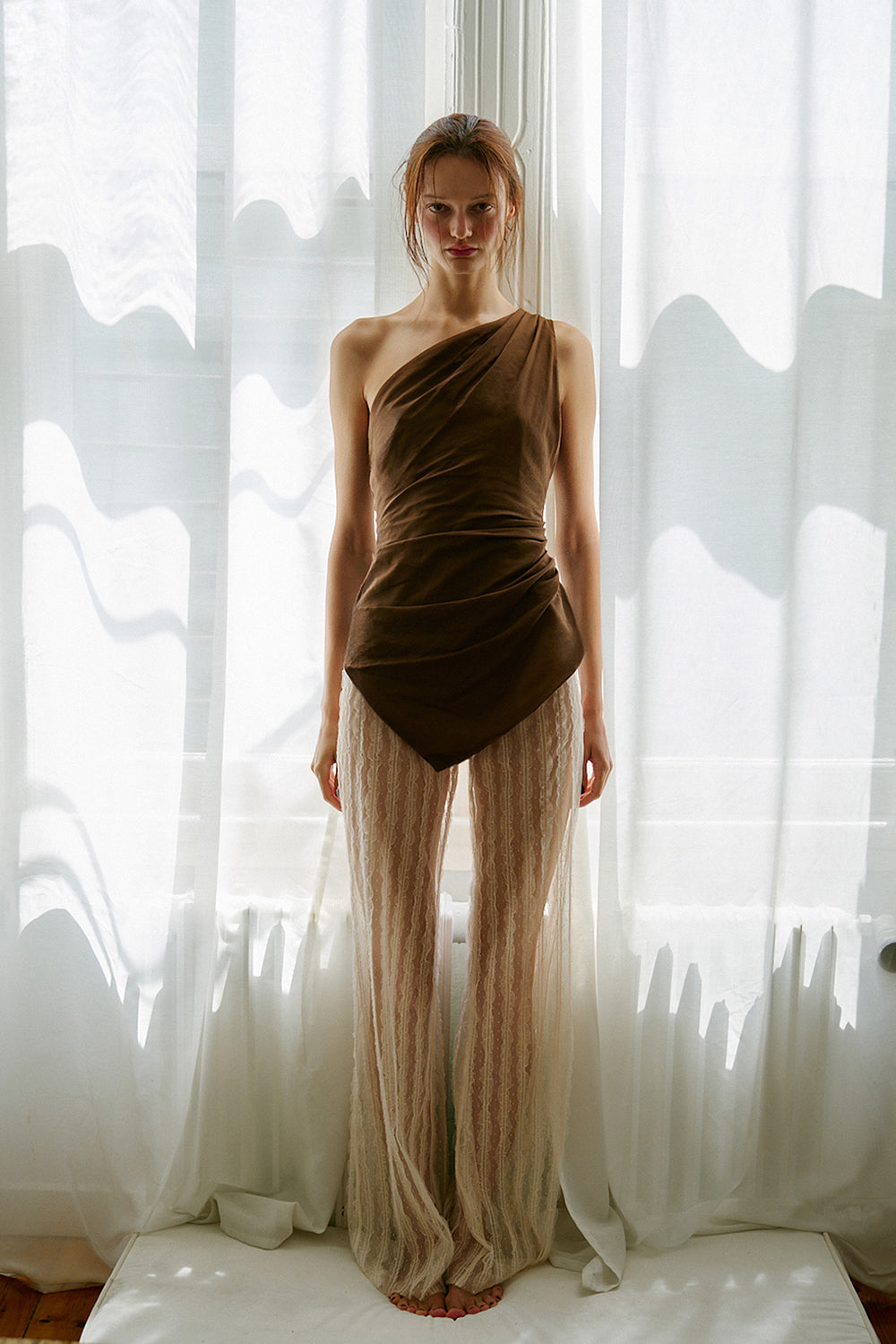 Silhouette, sahnede bırakılan bir iz gibi. İkonik balet Sergei Polunin’in parçalı ya da dönüşen hallerinden esinlenerek, bir kimliğin dışa vurumunu yansıtıyor. Kimi zaman net, kimi zaman gölgeli — ama daima unutulmaz.Açıklama:Çikolata kahverengi, hafif parlak saten vual kumaş