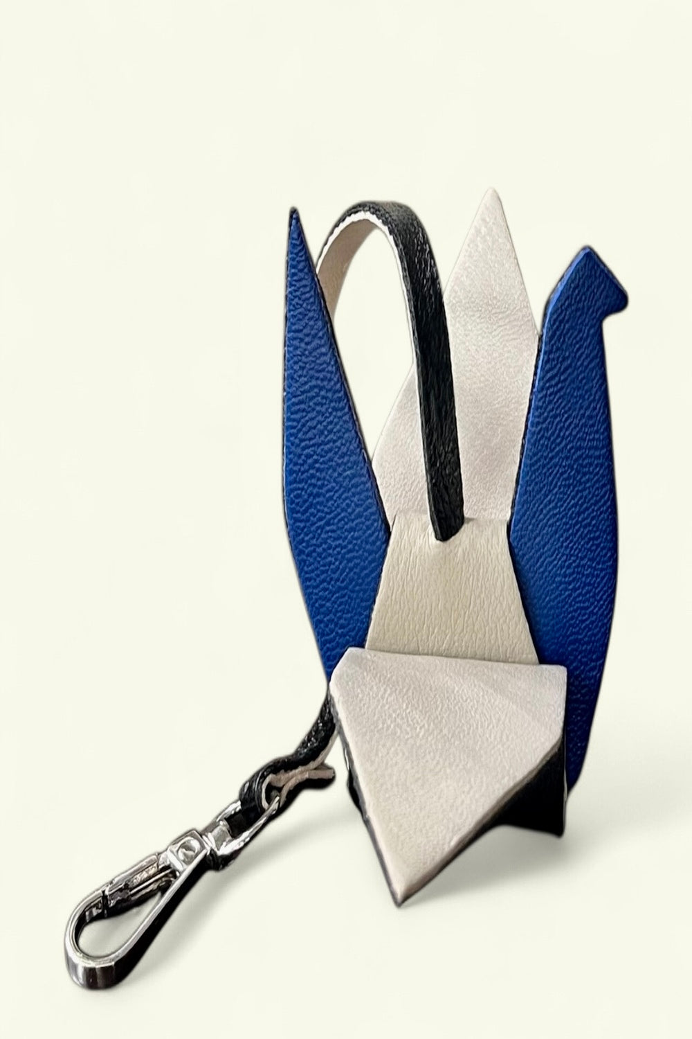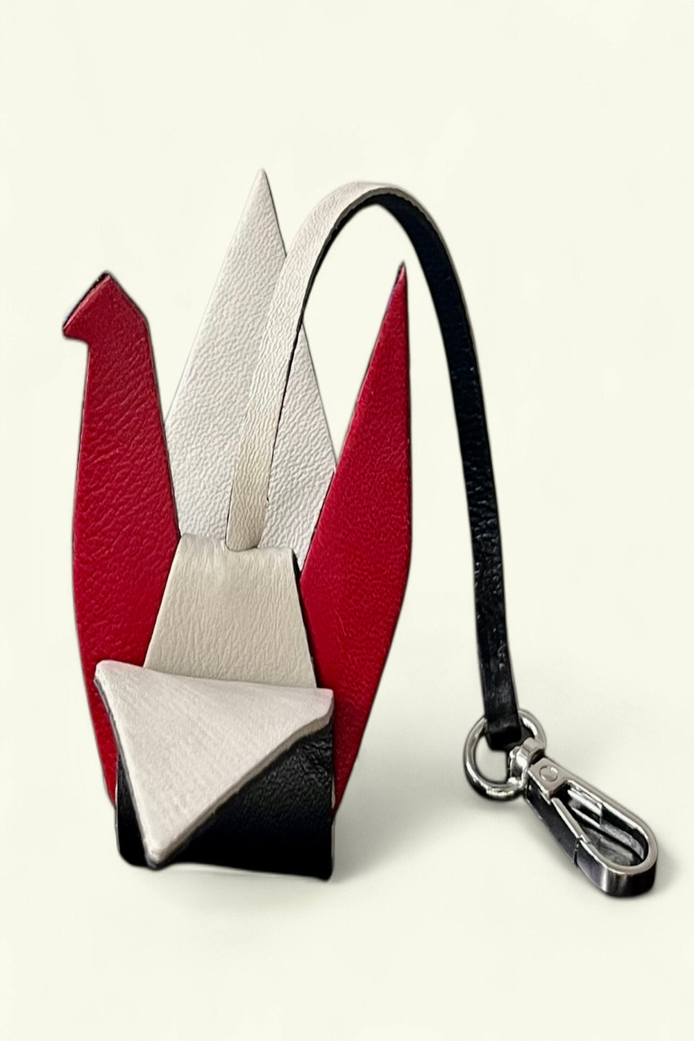 Deri El Yapımı Charm Kırmızı Mavi- Turna Kuşu Çanta Aksesuarı