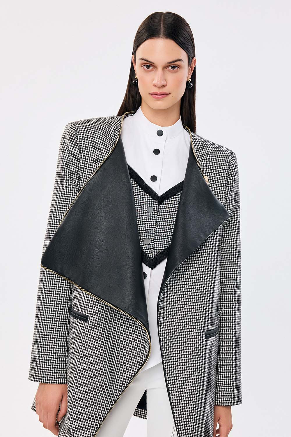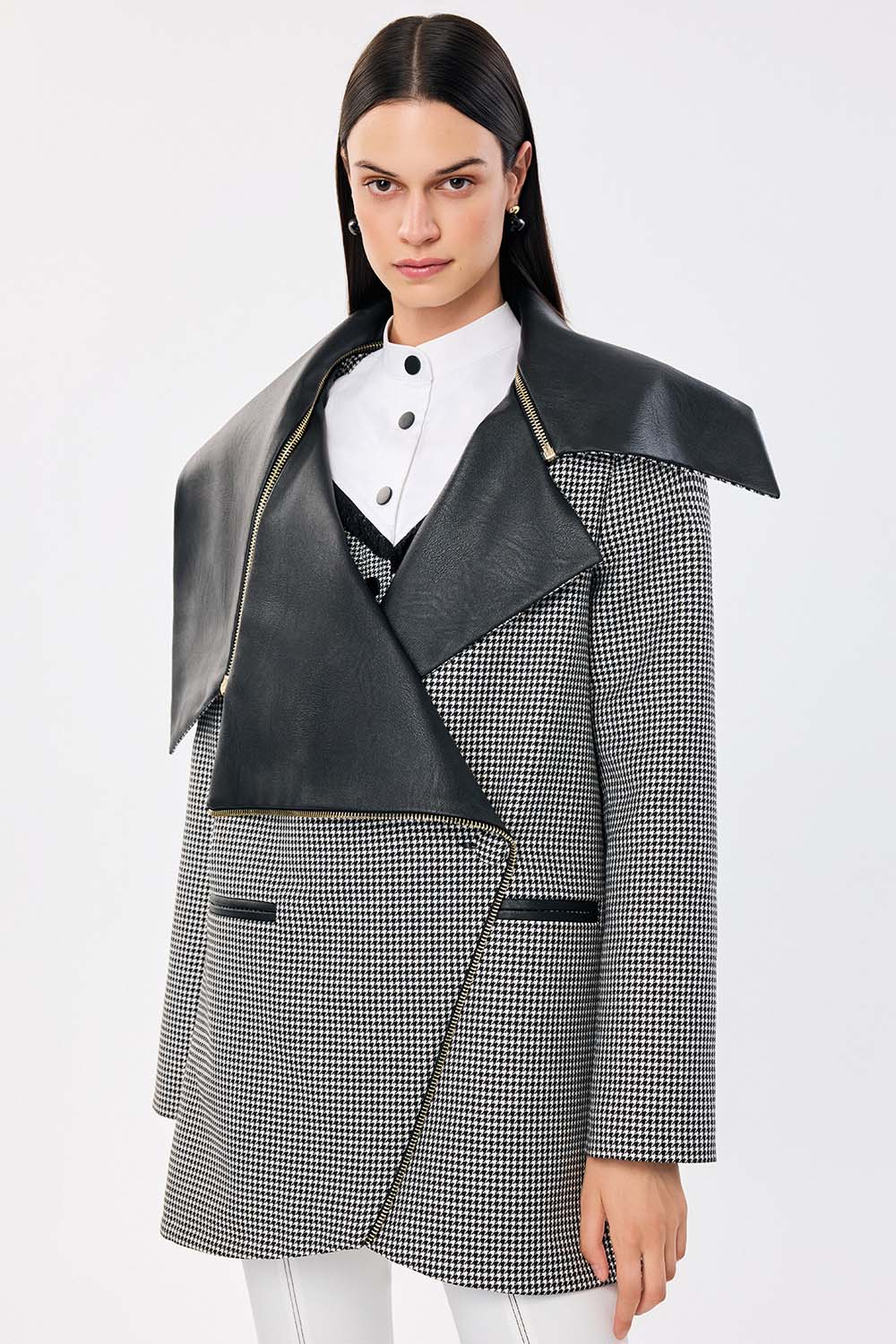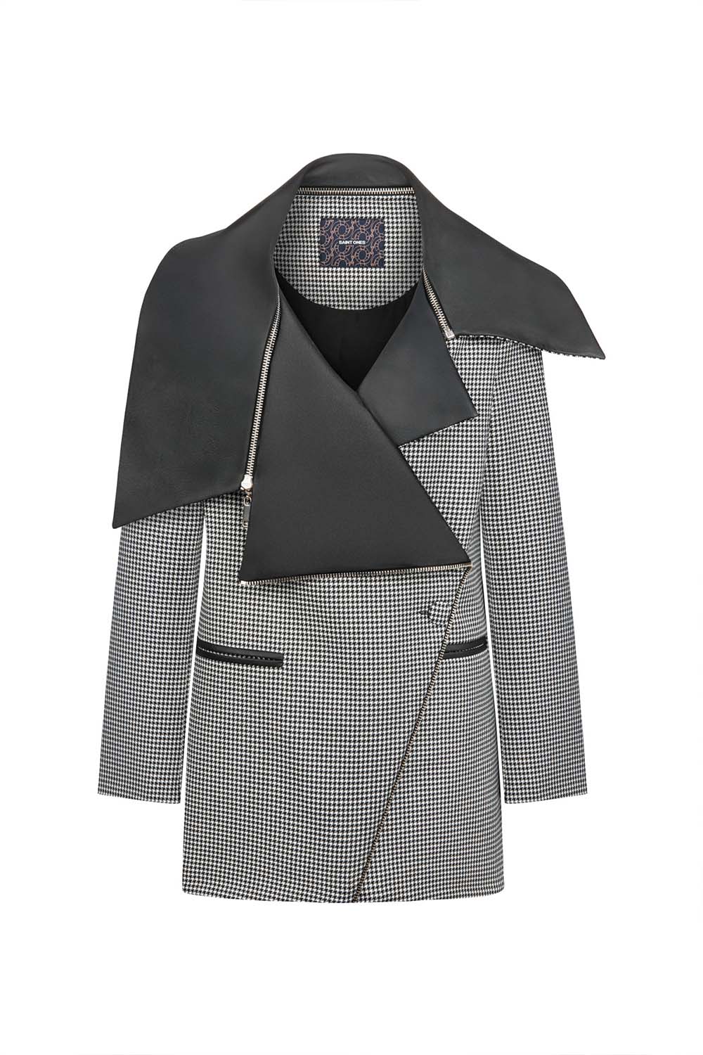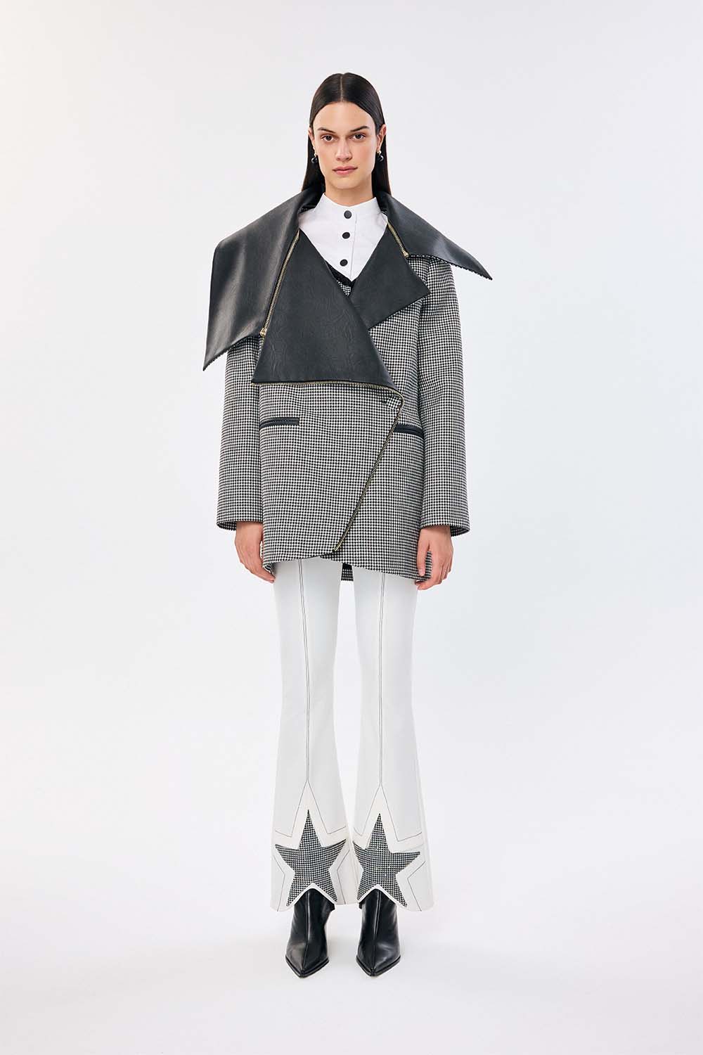 A futuristic twist on classic outerwear, the Eta Jacket stands out with its structured silhouette and oversized lapel detail. The asymmetrical zip closure and high-neck design offer both function and style, ensuring a bold yet polished finish.