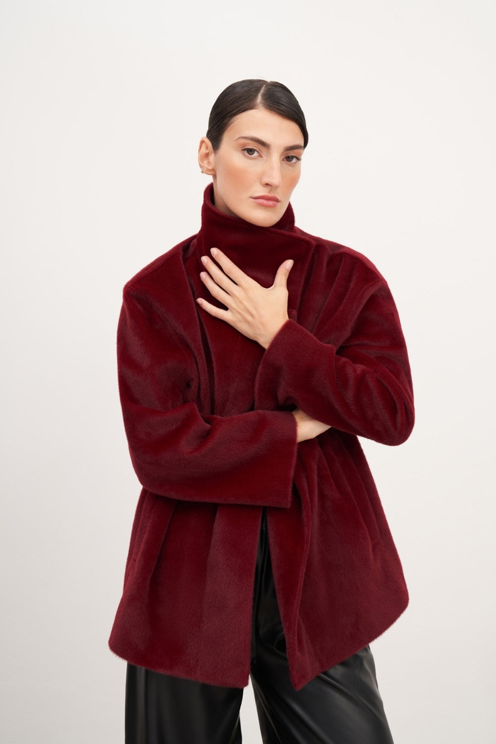WINGCOTT Bordo Alpaka Yüksek Yaka Kaban