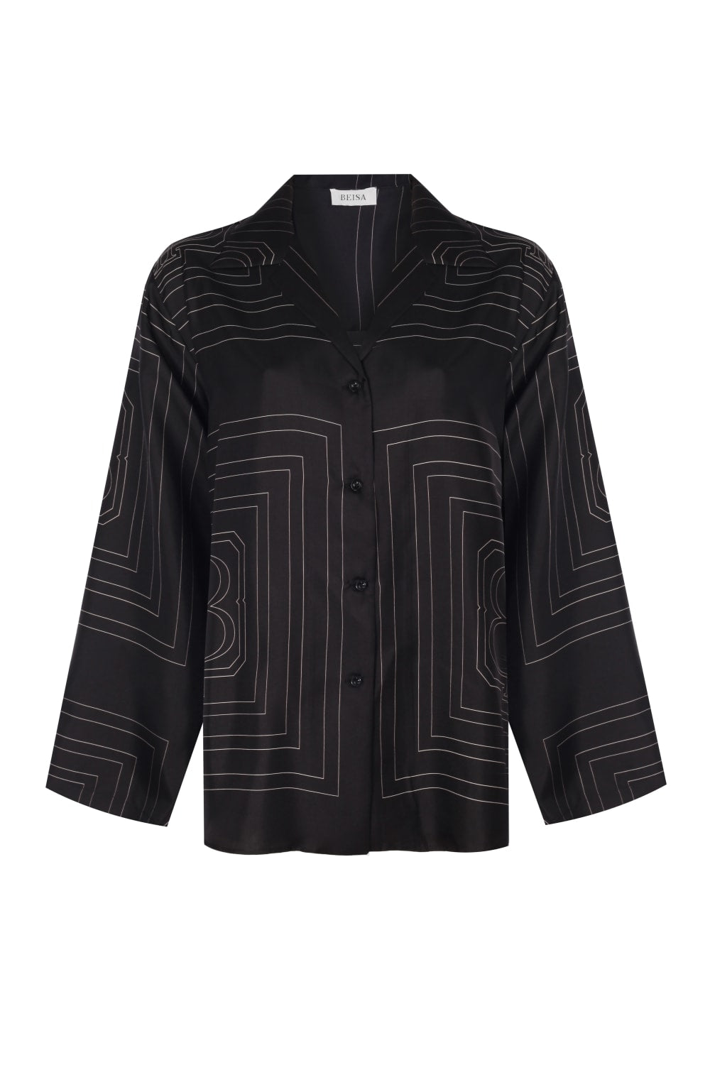Orta ağırlıkta ipek kumaştan yapılmış Monogram İpek Gömlek, zıt renkte fildişi iplikle ince bir monogram deseni işlenmiş BEISA gömlek, dökümlü yapısı ve zarif monogram detayıyla sofistike bir şıklık sunar. Rahat bir silüet oluşturacak şekilde tasarlanmış, yakalı bir tasarımdır. Evde konforlu bir şıklık için ideal olduğu kadar, dışarıda gündüz veya gece stilinizi mükemmel bir şekilde tamamlayacak çok yönlü bir parça.