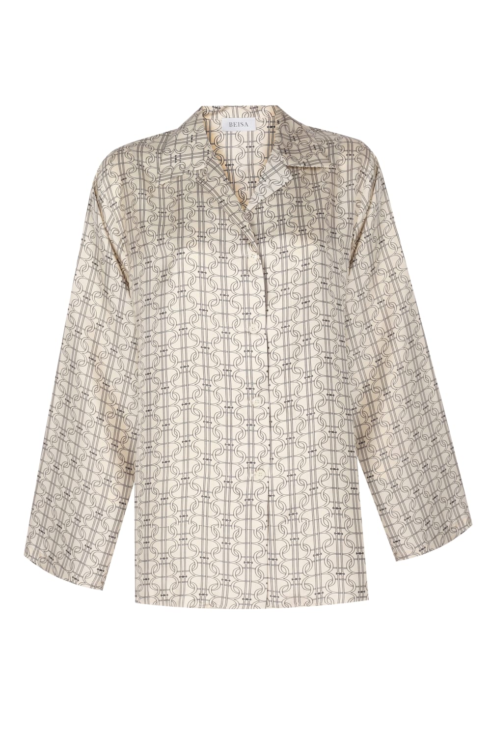 Orta ağırlıkta ipek kumaştan yapılmış Monogram İpek Gömlek, zıt renkte siyah iplikle ince bir monogram deseni işlenmiş BEISA gömlek, dökümlü yapısı ve zarif monogram detayıyla sofistike bir şıklık sunar. Rahat bir silüet oluşturacak şekilde tasarlanmış, yakalı bir tasarımdır. Evde konforlu bir şıklık için ideal olduğu kadar, dışarıda gündüz veya gece stilinizi mükemmel bir şekilde tamamlayacak çok yönlü bir parça.