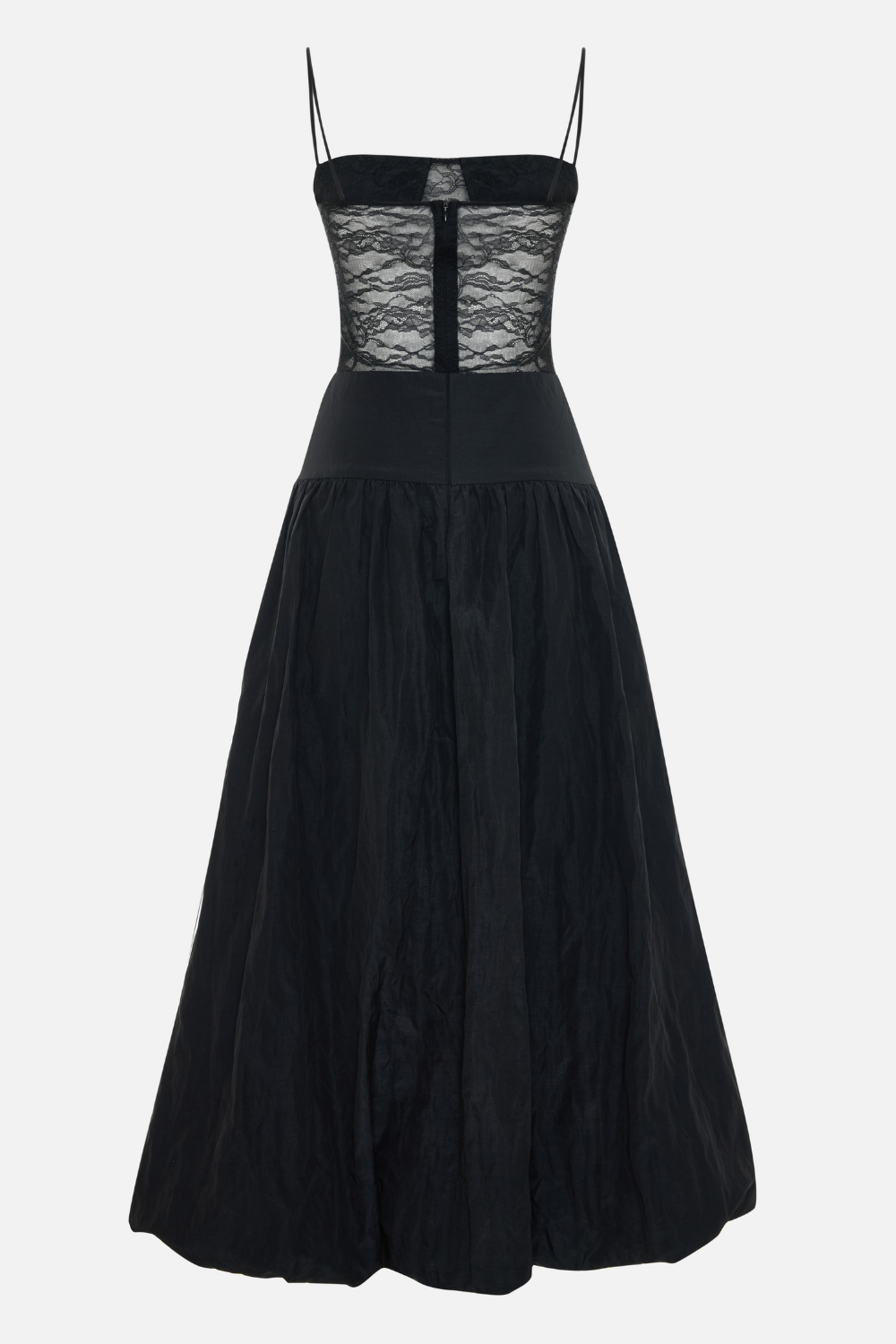 Hacimli balon etek tasarımı hareket özgürlüğü sağlarken, arkadaki fermuar kapama giyimi kolaylaştırır. Zamansız siyah tonu ve sofistike detaylarıyla kokteyl davetleri, akşam yemekleri ve özel günler için ideal bir seçimdir.