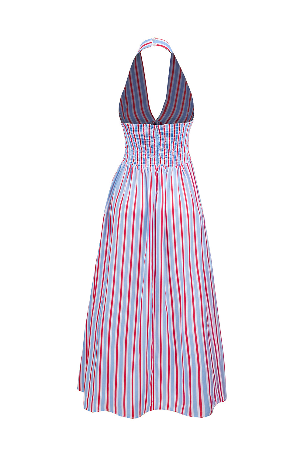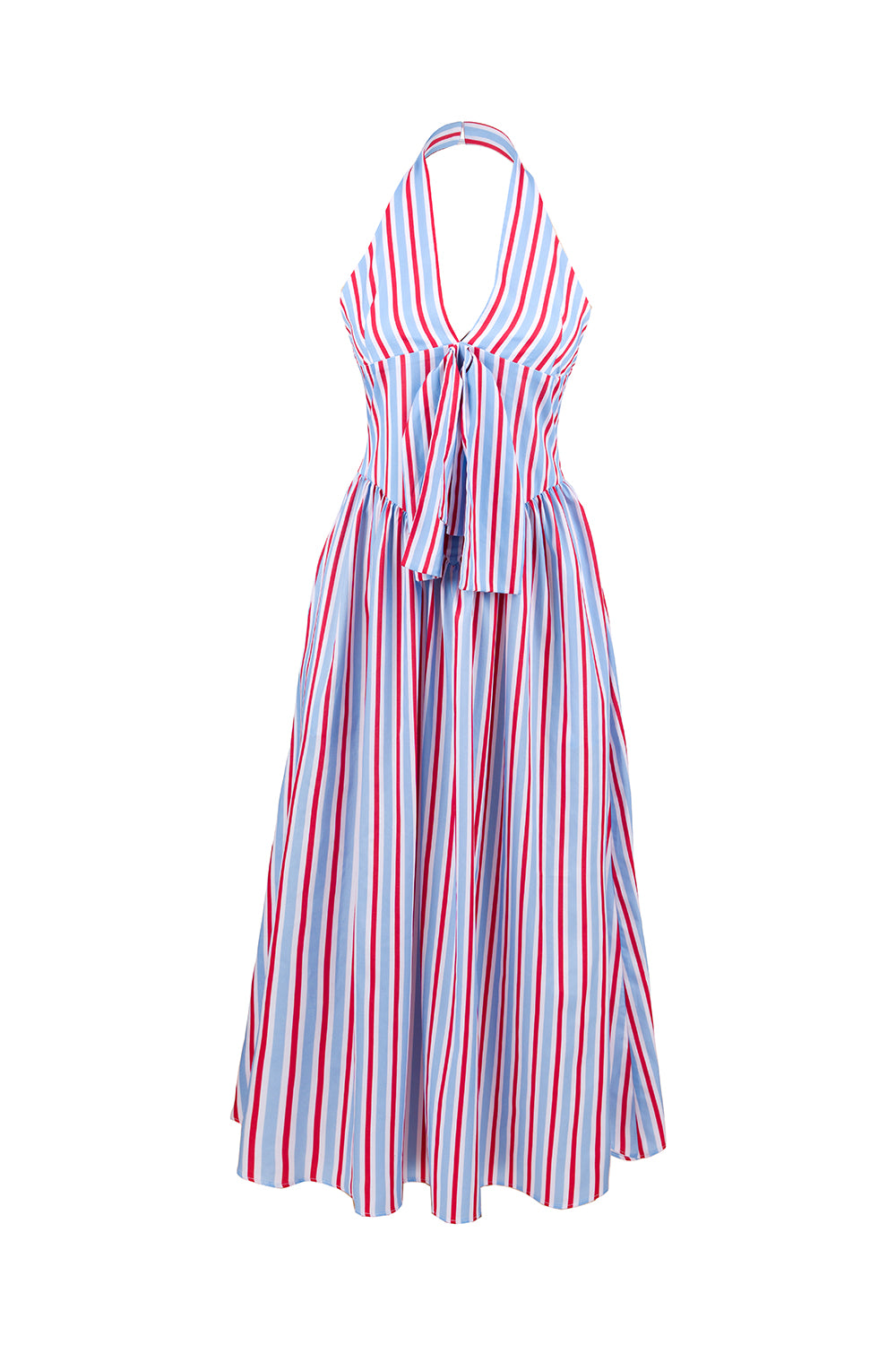 Renkli çizgiler, boyundan bağlamalı ve bağcıklı ön tasarımıyla enerjik ve feminen bir yaz stili.