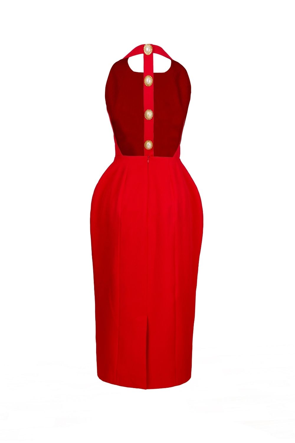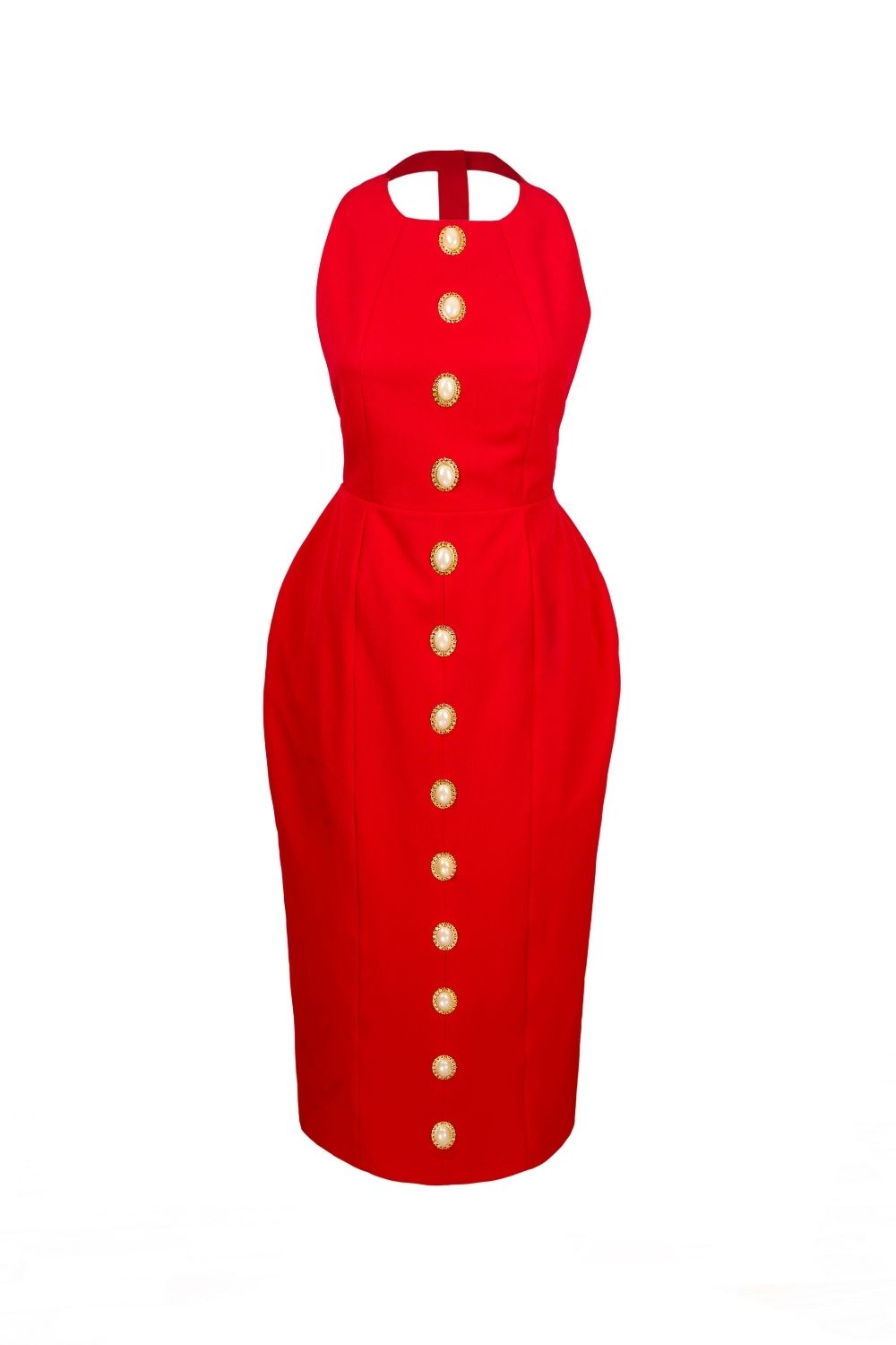İnci Dress Sırt Dekolteli Kırmızı Maxi Elbise