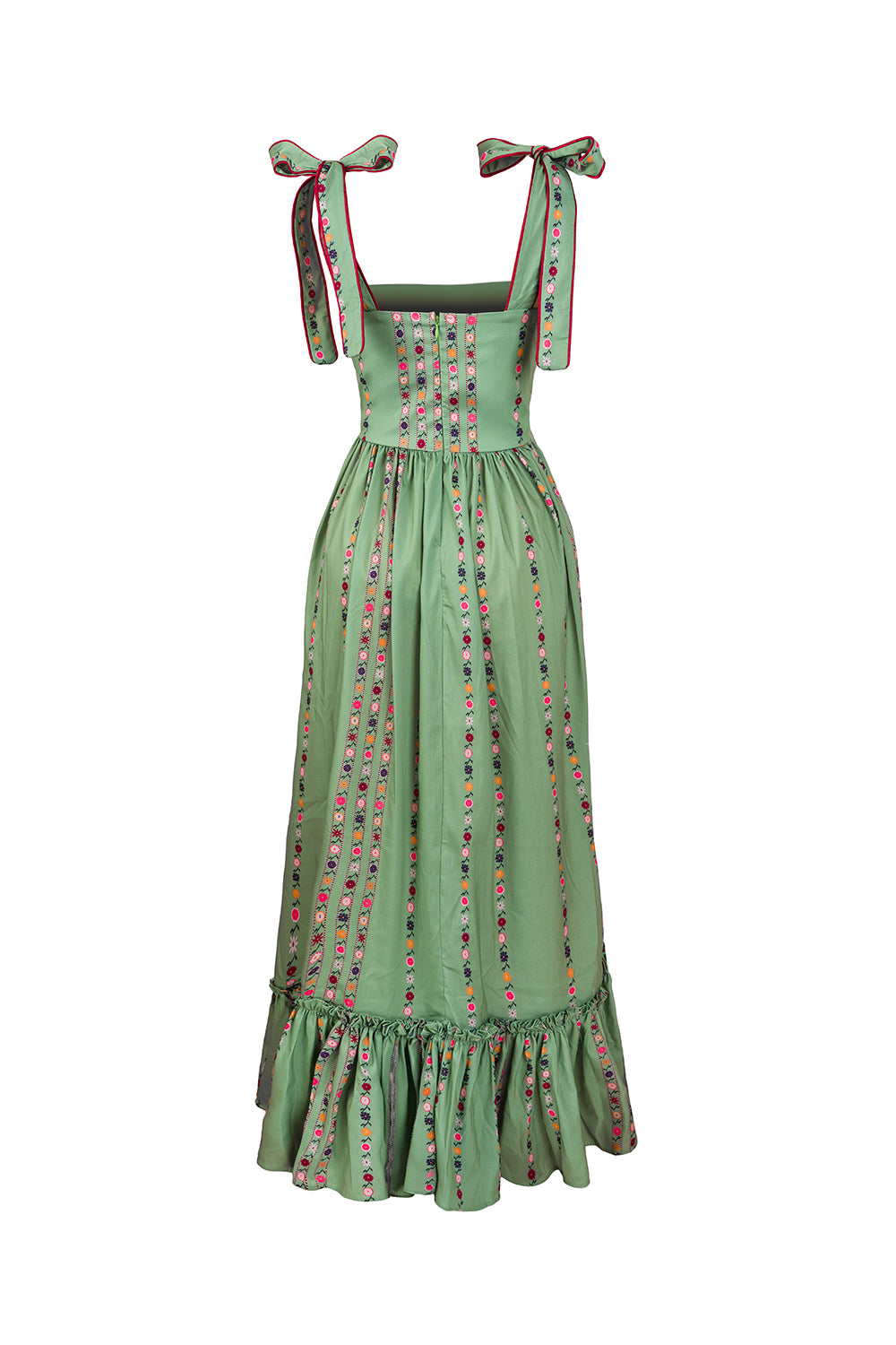 Etnik desenlerin modern yorumuyla fark yaratmaya hazır mısınız? Laulei’nin özgün tasarımı olan bu uzun elbise, belden oturtmalı kalıbı ve uçuş uçuş eteğiyle stilinize romantik bir dokunuş katıyor. Ayarlanabilir bağlamalı fiyonk askıları, kişisel konfor ve estetik sağlar.