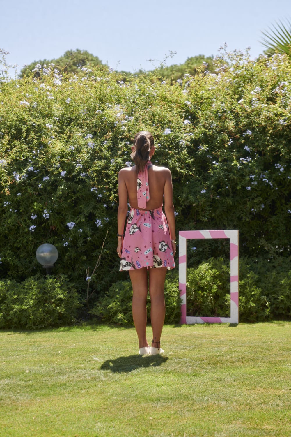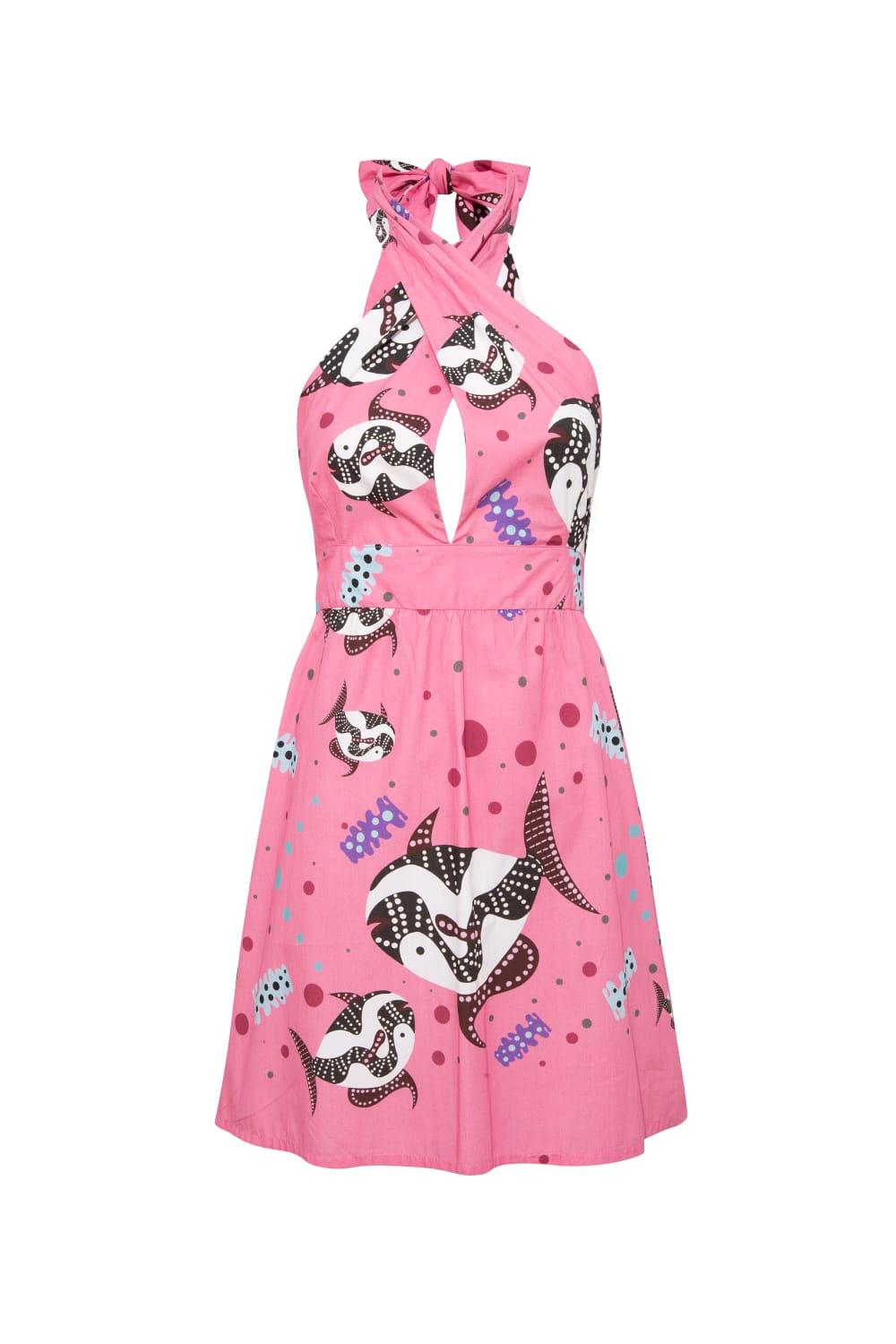 Pembe Balık Desenli Kısa Elbise Desenler, Sanatçı Defne Camcıoğlu’nun eserlerinden oluşturulmuştur,%100 Pamuk,Ürün dayanıklılık ve konfor gözetilerek, ince dokulu ve tok duruşlu poplin kumaş ile özenle tasarlanmıştır,Balık kızı deseninden oluşan eser, poplin kumaş'a dijital baskı yöntemi ile basılmıştır,Kısa boy, sırt dekoltesi ile tasarlanmış elbise, boyundan bağlama detayı ve göğüs dekoltesi ile şık bir görünüm sunmaktadır.BAKIM ÖNERİLERİ:30 derecede yıkama yapılabilir,Ağartıcı kullanılamaz,Makinede kurutmayınız."