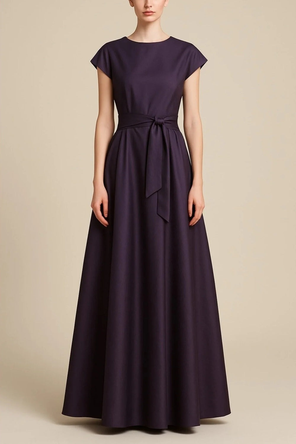 Kimono Kol Detaylı Maxi Boy Mor Tafta Şık Elbise