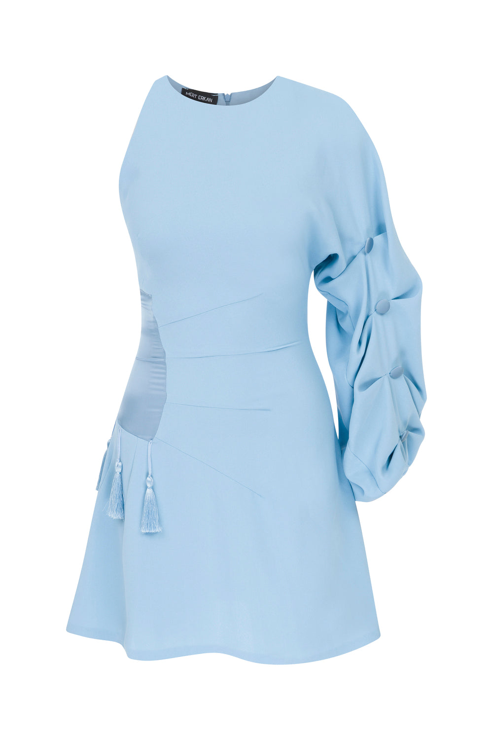 Tek Omuzlu & Kolu Drapeli Mini Krep Elbise