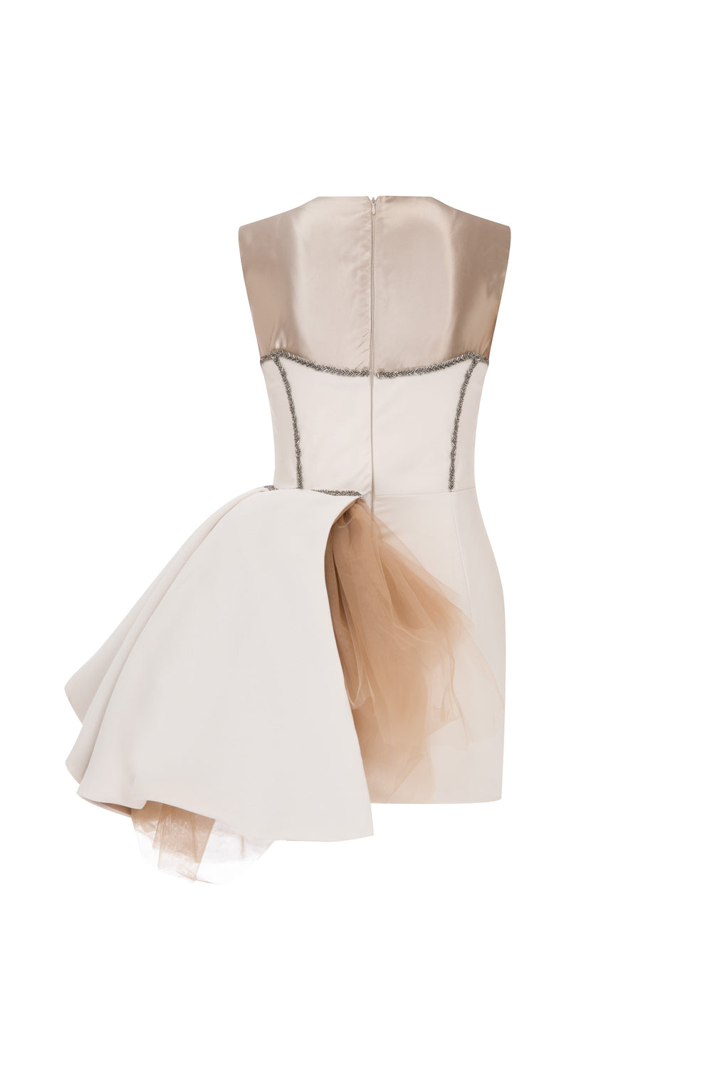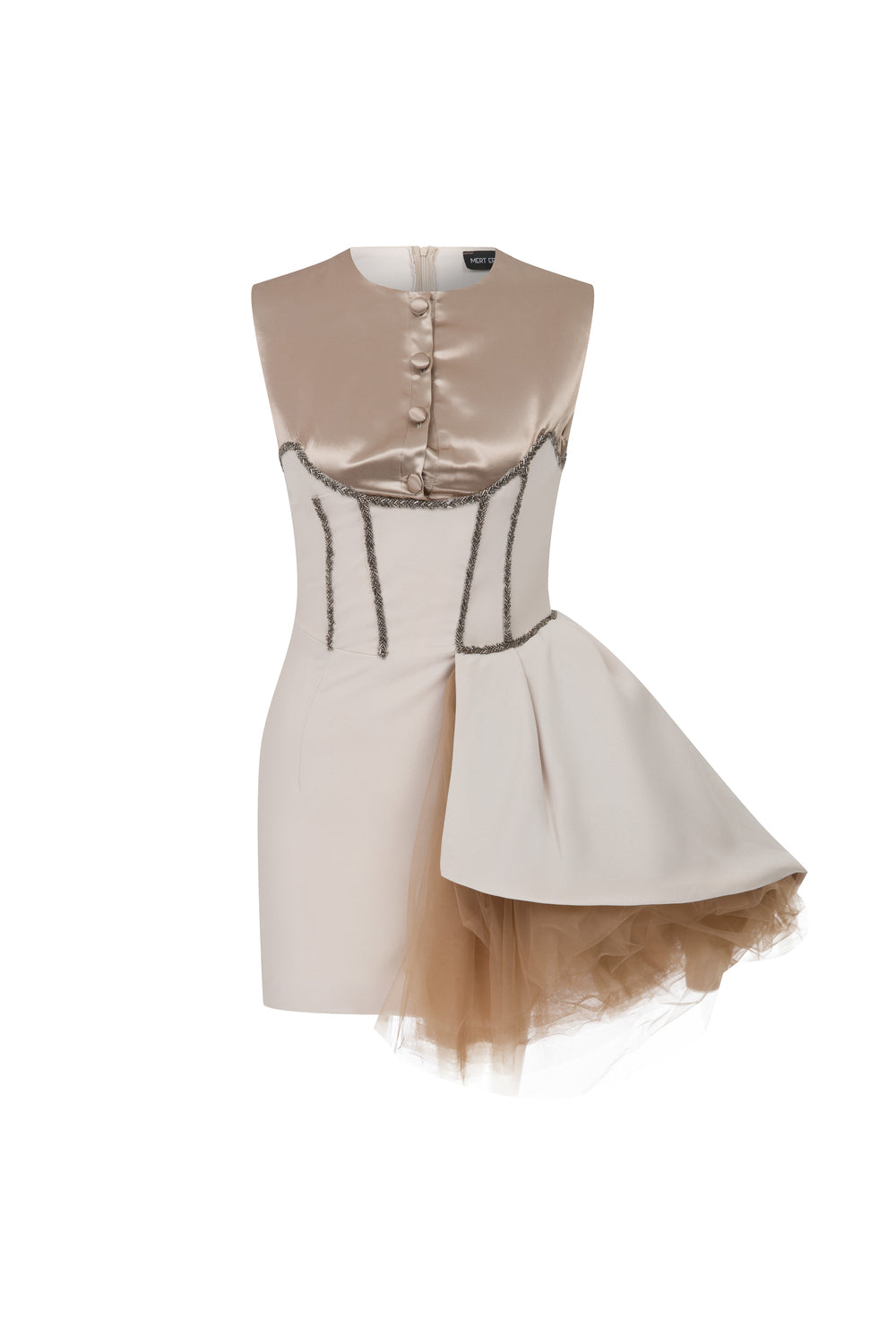Tek Yanı Avant-Garde Detaylı & Taş İşlemeli Krep Mini Elbise