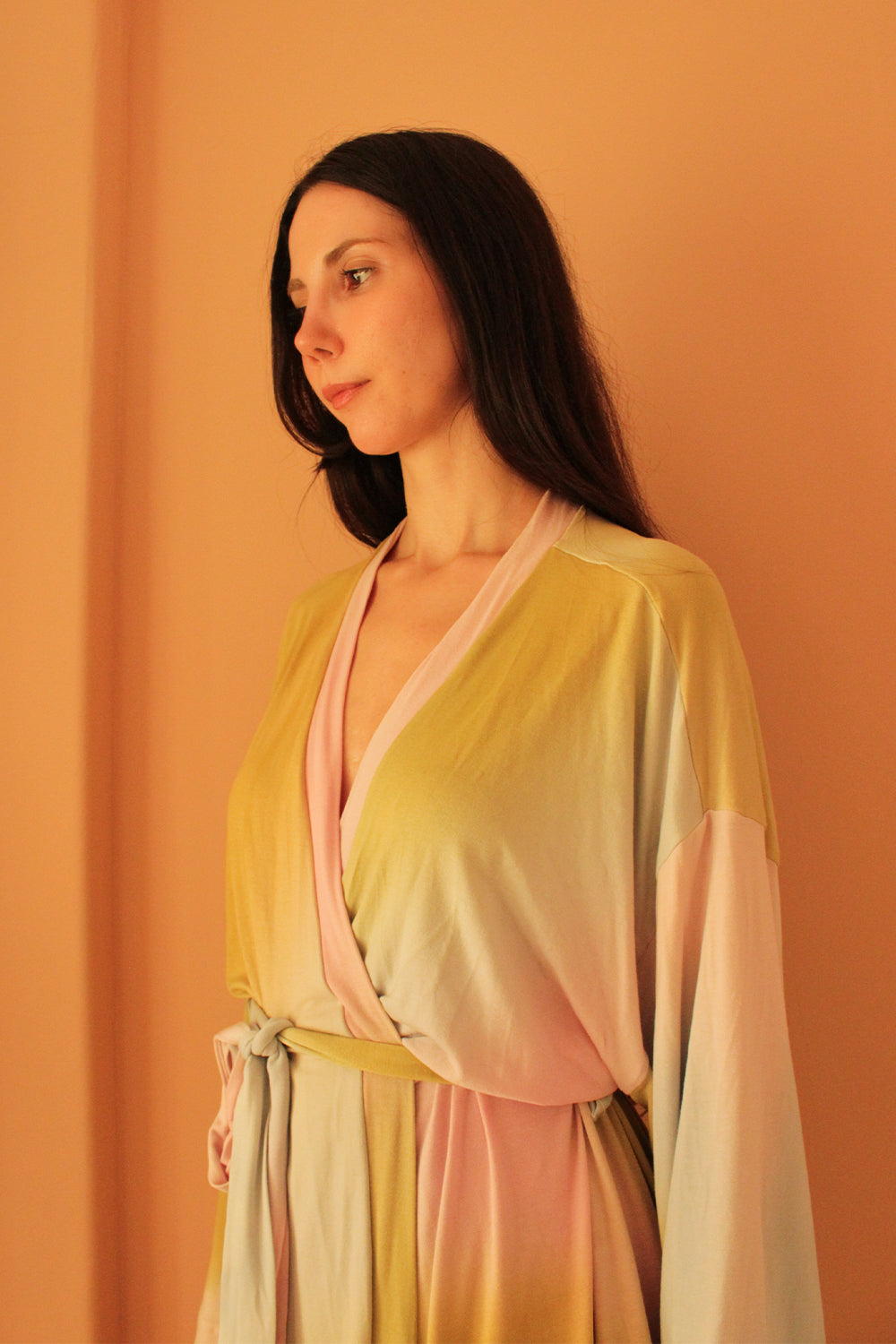 AURI Loungewear Kimono, rahatlığı zamansız bir siluetle buluşturan akışkan bir üst parça. Yumuşak viskon dokusu sayesinde evde veya şehirde farklı kombinlere uyum sağlayan hafif ve dökümlü bir alternatif sunar. Auri Loungewear Top ve Pantolon ile takım olarak tamamlanabilir.Ürün Detayları