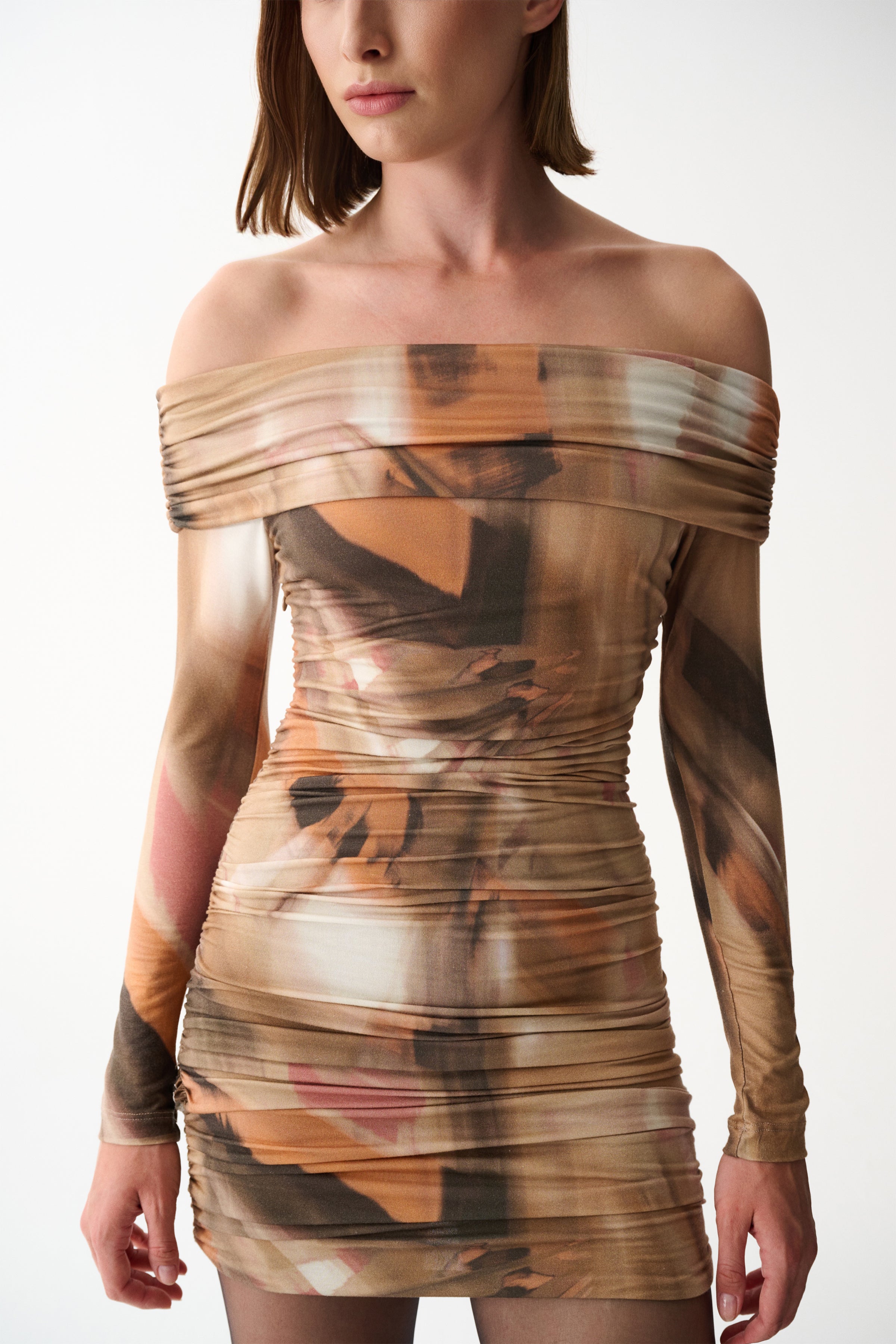 Marimar Uzun Kollu Elbi̇se / Kahverengi̇ Desenli̇