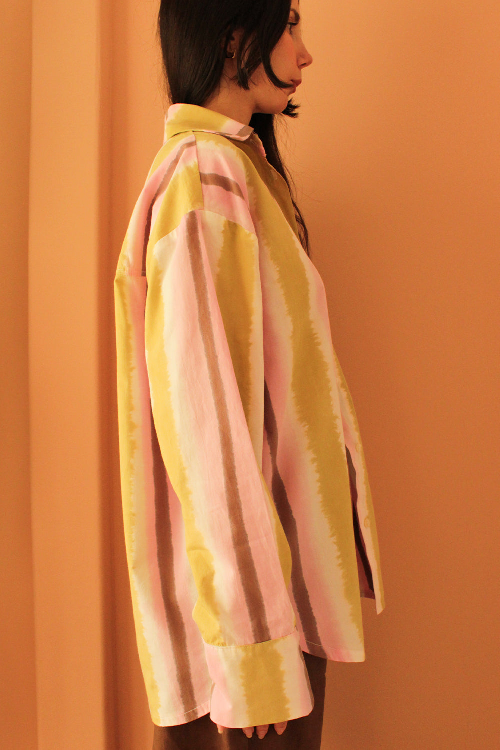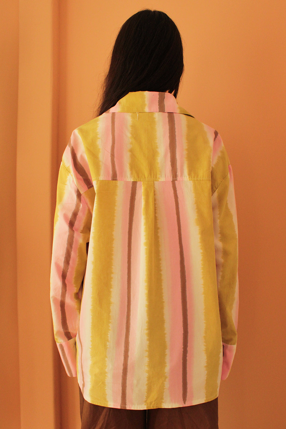 Aftersun’ın özel olarak geliştirdiği el boyama tekniğiyle tek tek uygulanır. Her parça, renklerin kumaş üzerinde doğal akışına izin verilerek ayrı ayrı çalışıldığı için birbirinden farklı karakterlerde ortaya çıkar.