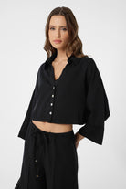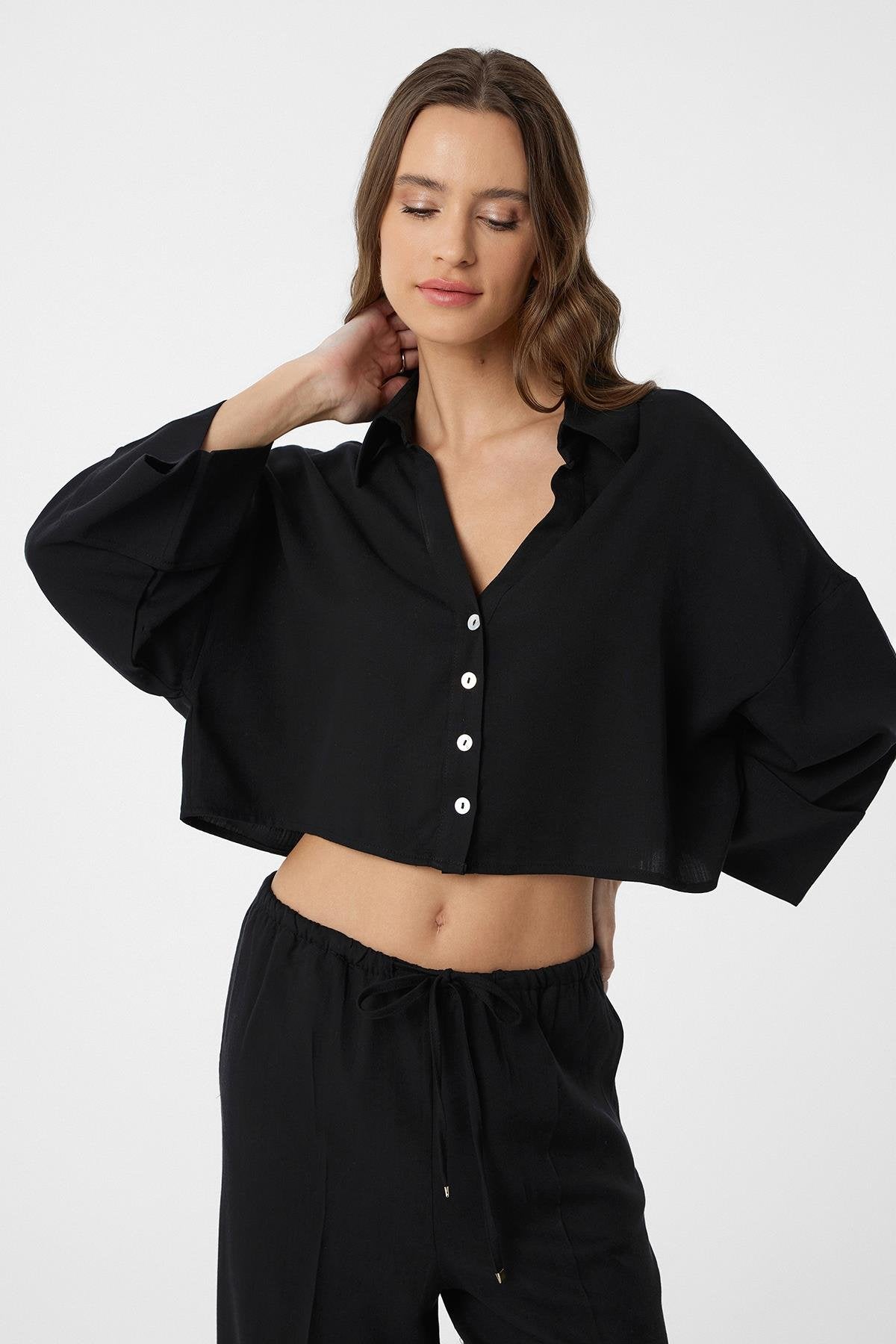 Siyah Crop Kadın Gömlek