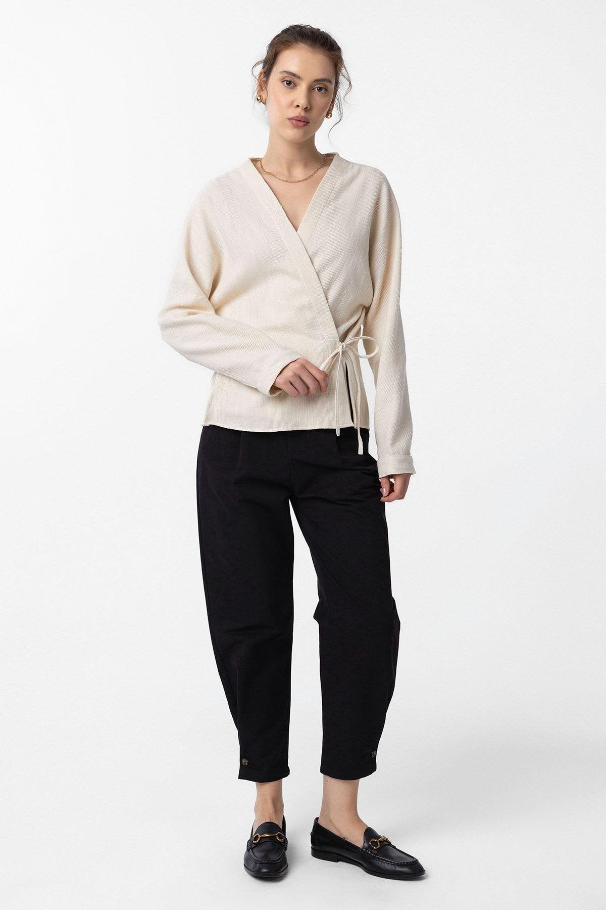 Ekru Bağlamalı Kimono Kadın Gömlek