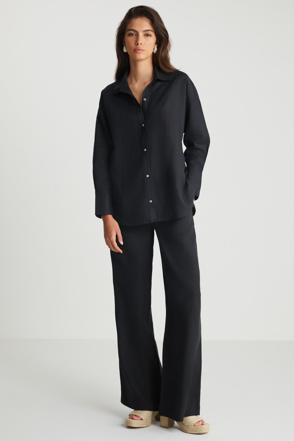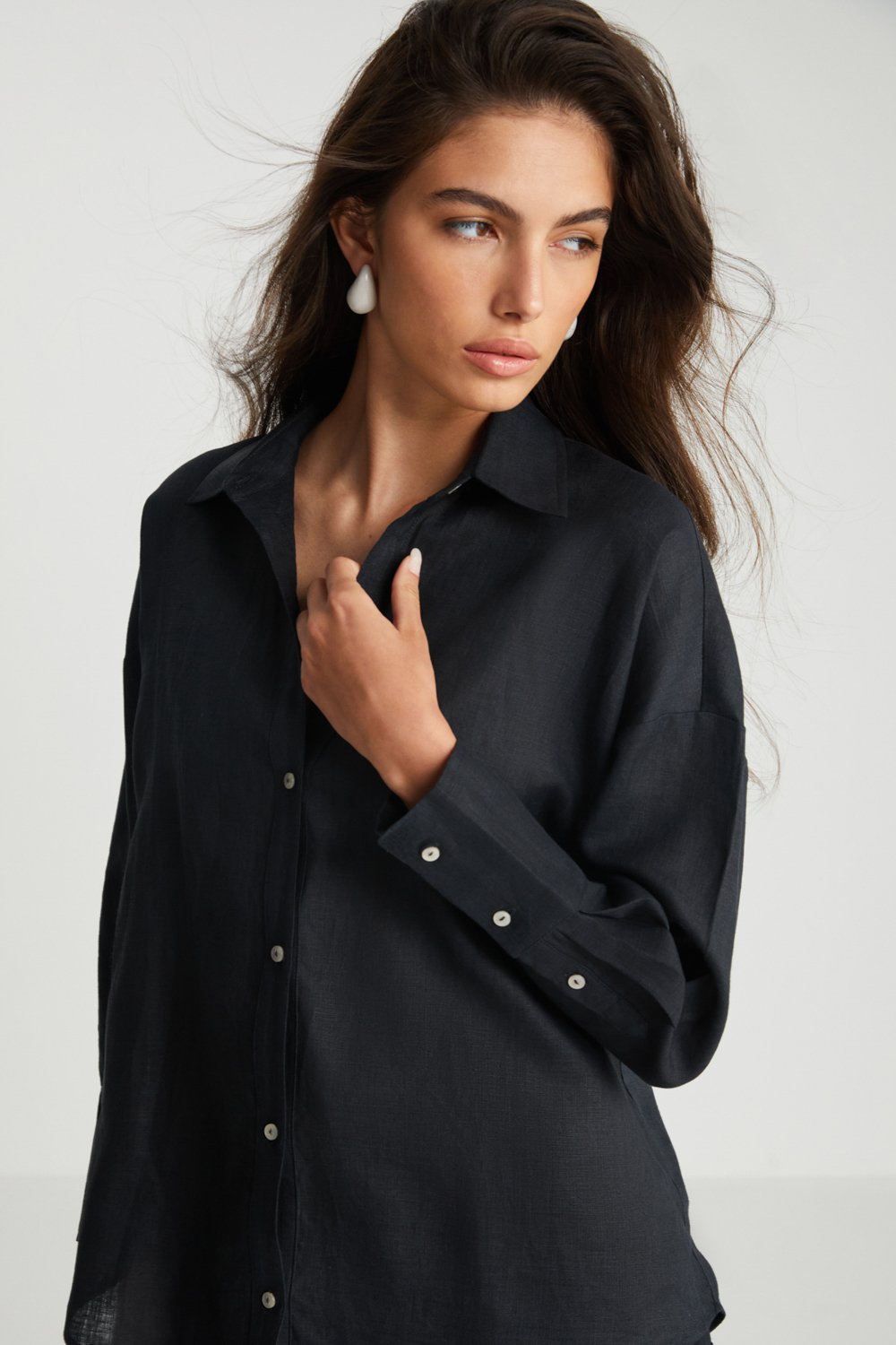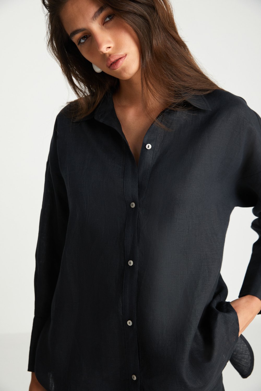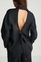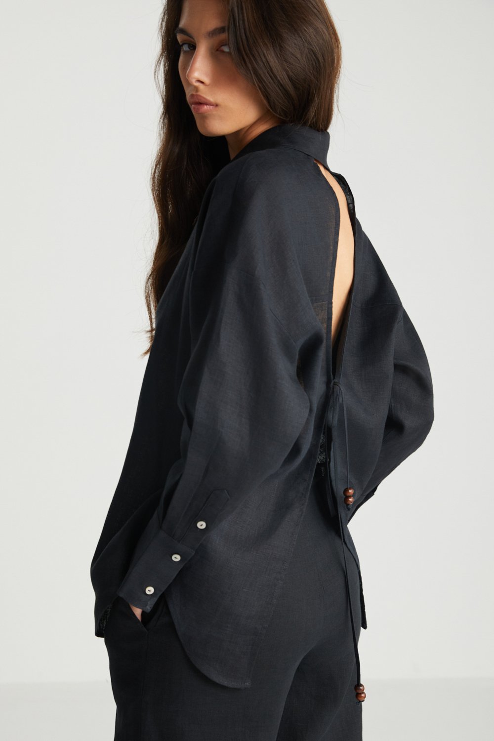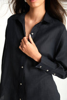 Sırt Detaylı Siyah Keten Gömlek