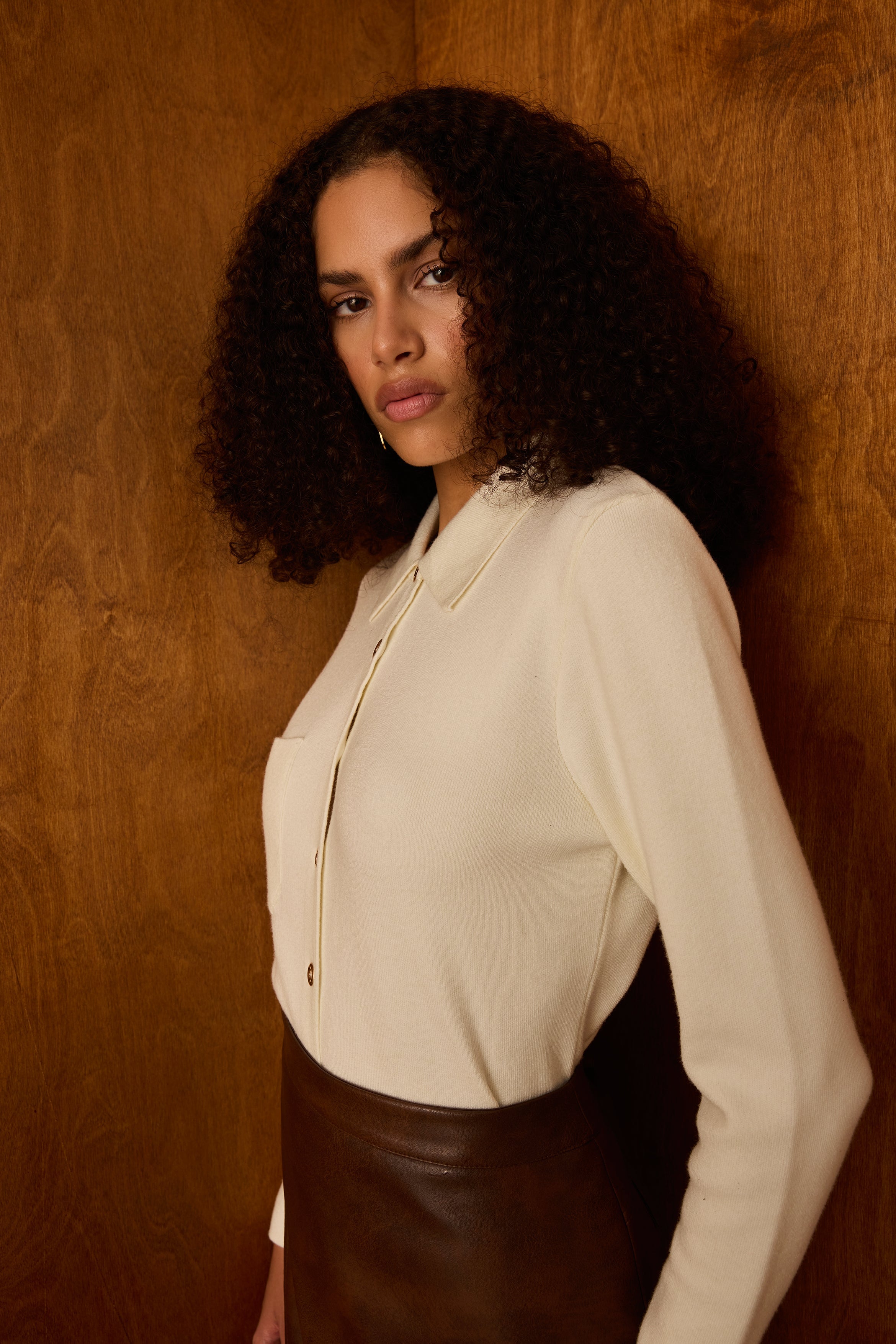Kumaşı %50 akrilik ve %50 pamuk karışımından oluşur. Bu sayede hem hafif hem de yumuşak bir doku sağlar. Rahat kalıbı ile gün boyu konforlu bir kullanım sunar. Tek başına ya da katmanlı kombinlerde kullanılabilir.
