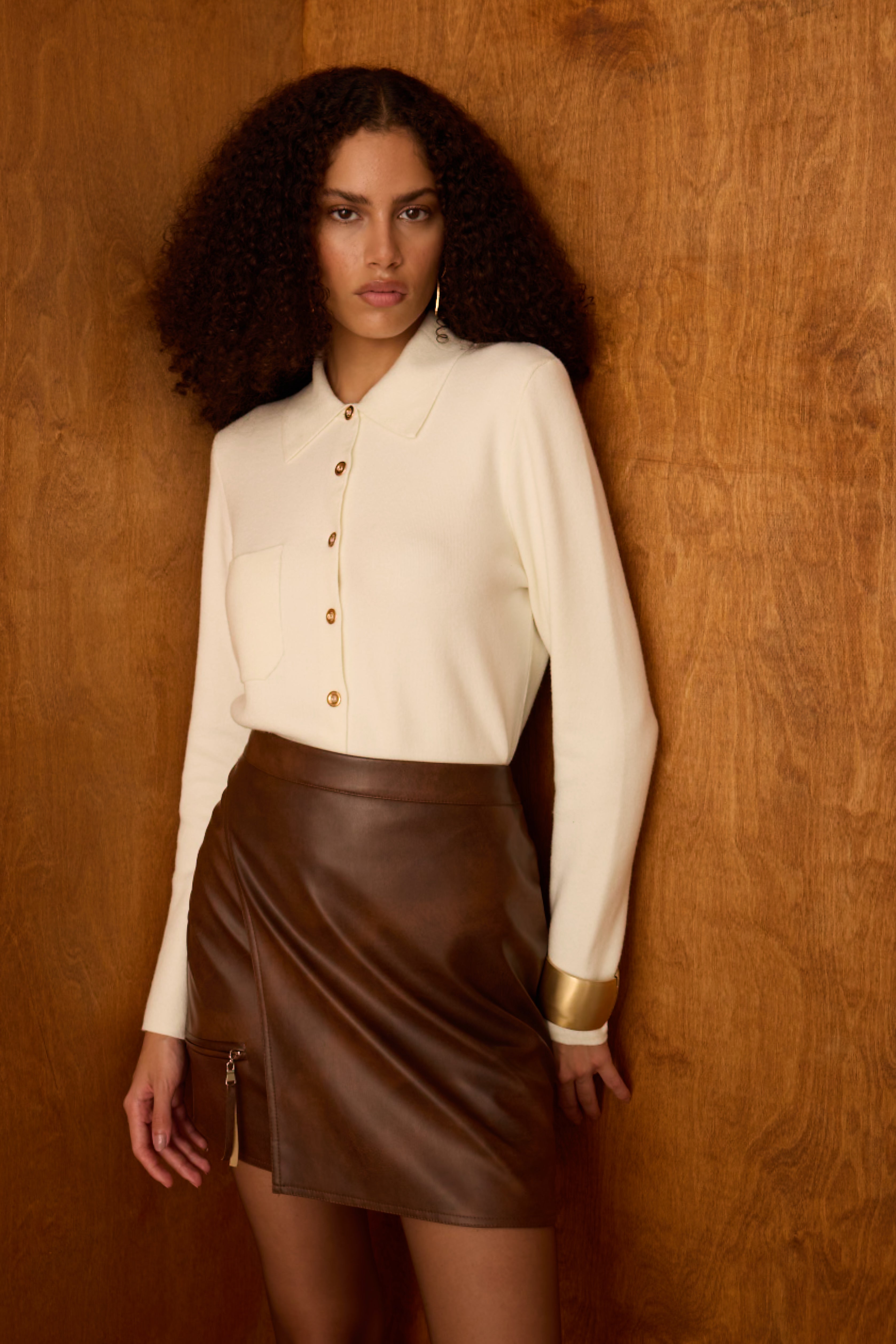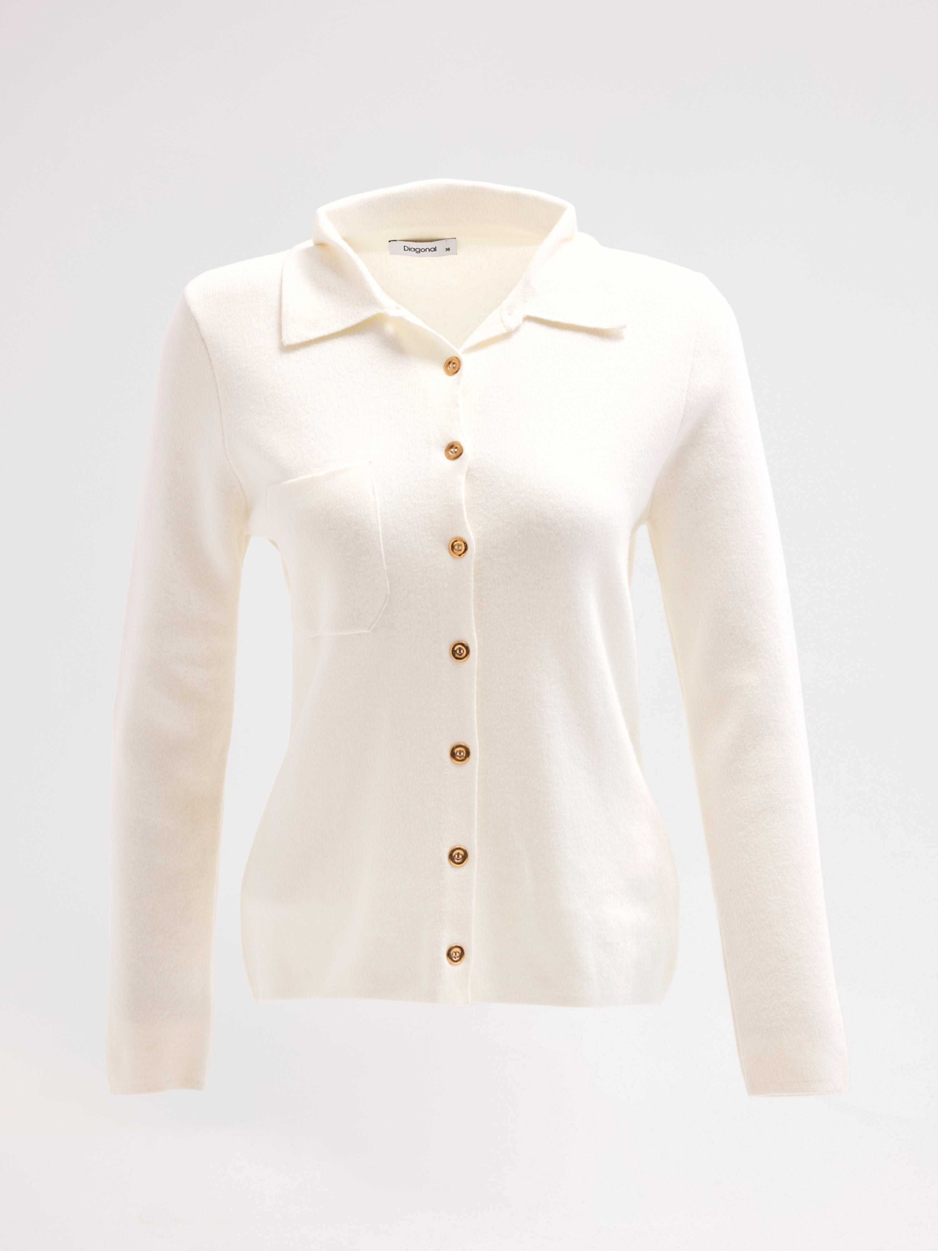 Tasarım düğmeleri ve göğüs cebiyle detaylandırılmış bu uzun kollu kadın gömlek, klasik yaka kesimiyle sade ama şık bir görünüm sunar. Günlük stilinize zarif bir dokunuş katmak için ideal bir parçadır.