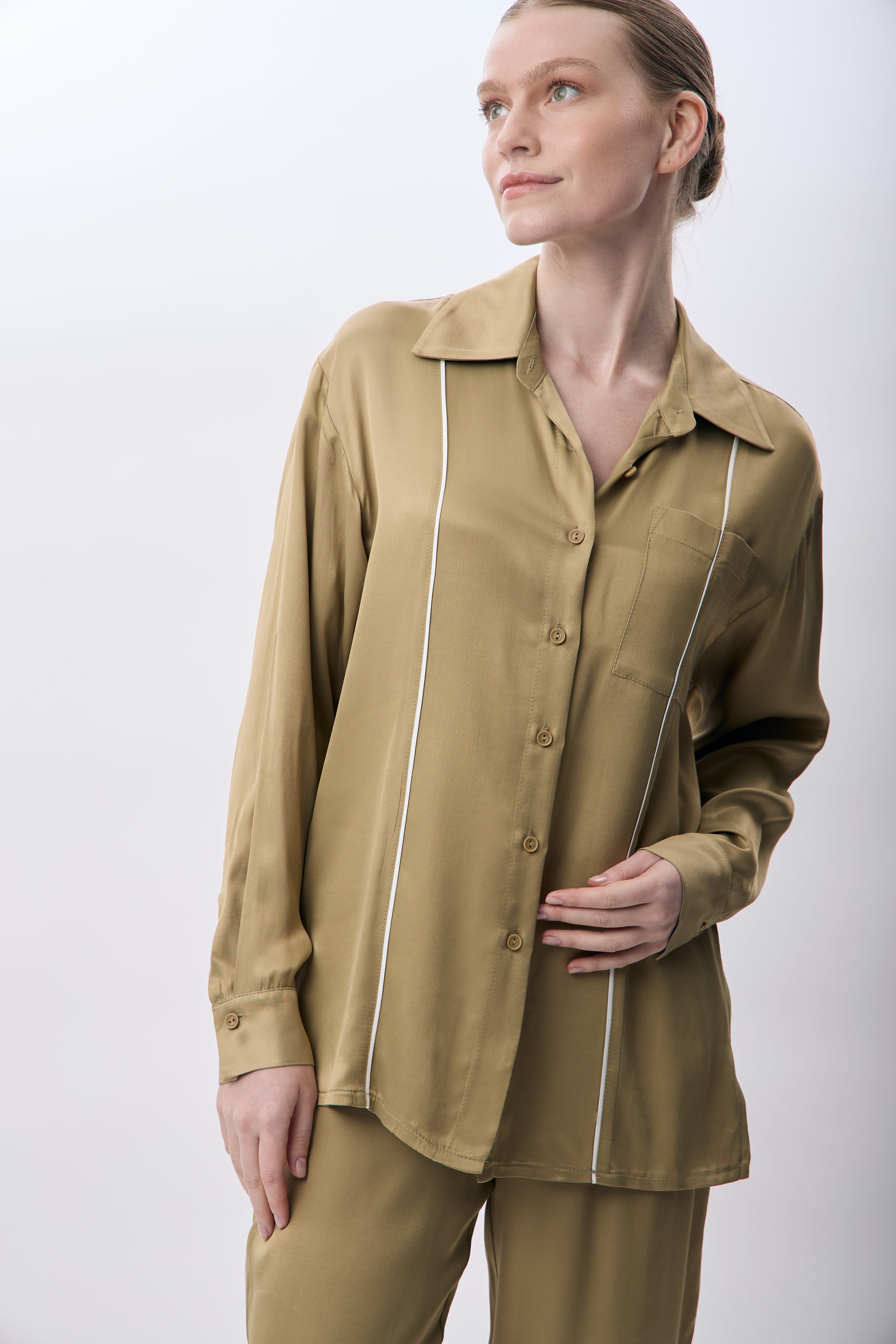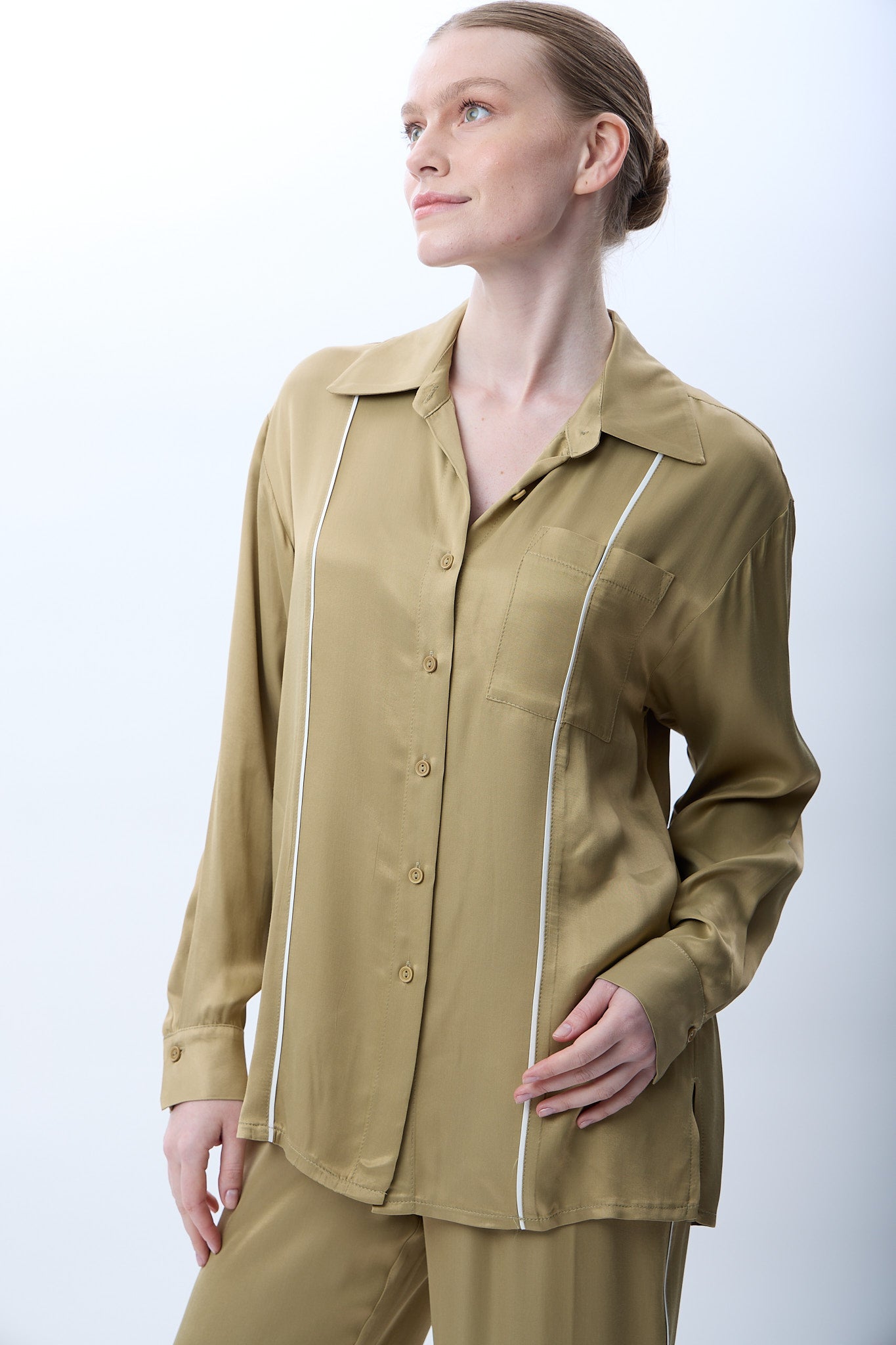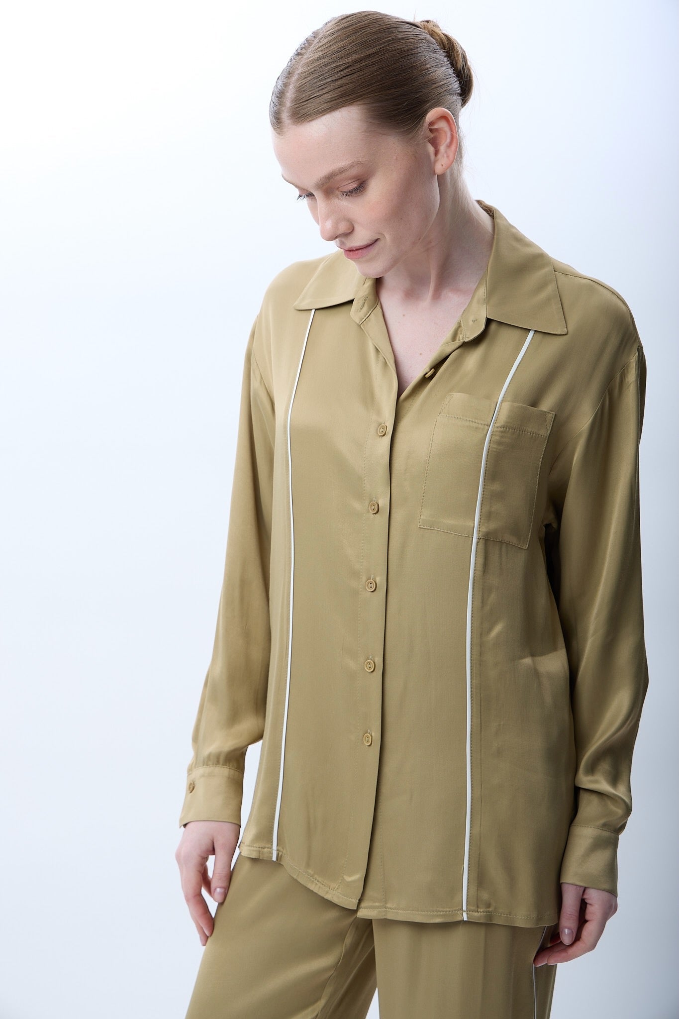 Uzun Kollu Tek Cepli Gömlek (Haki)