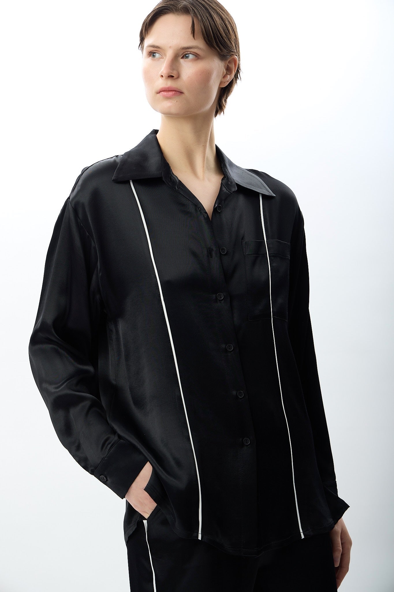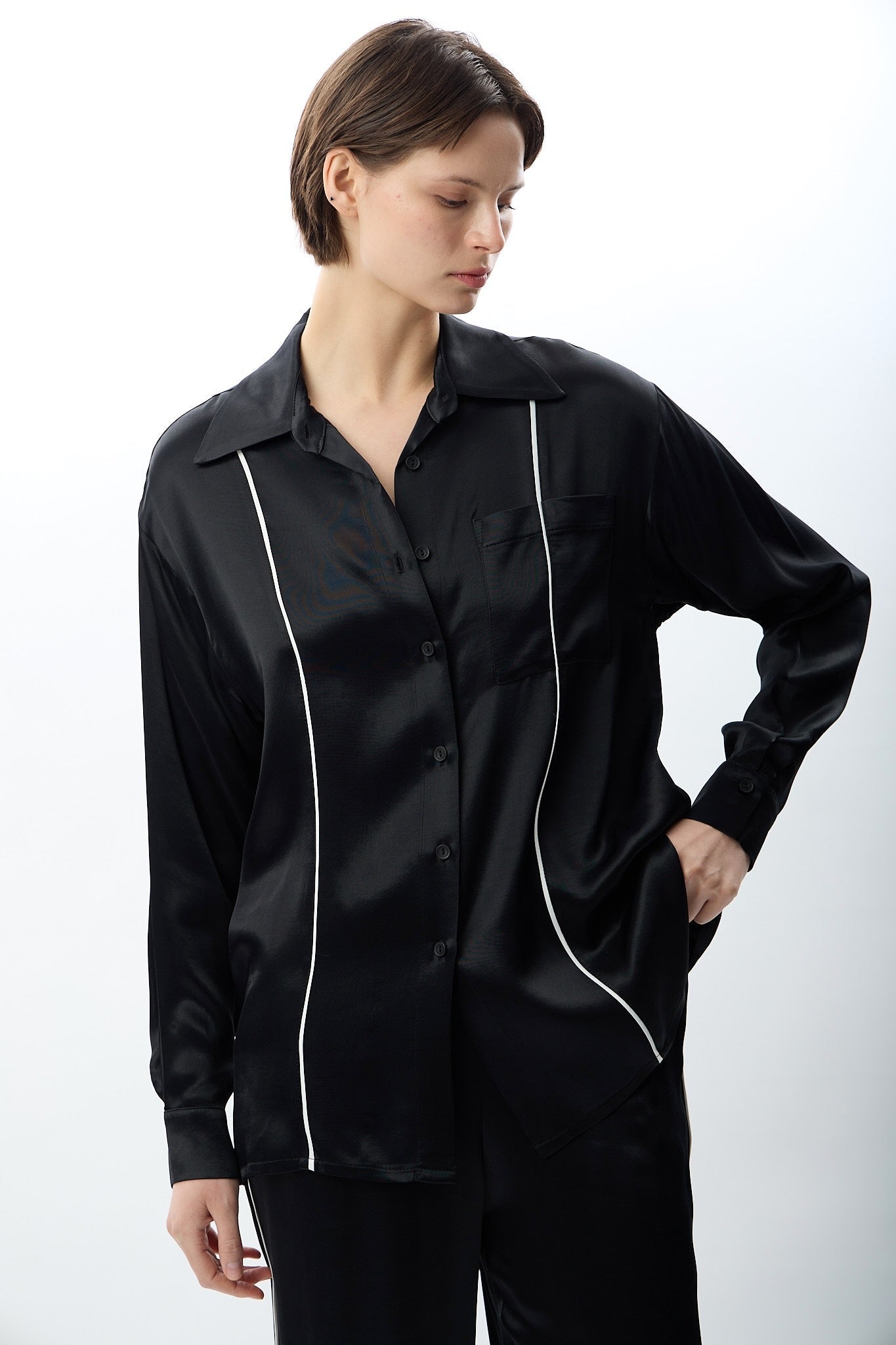 Uzun Kollu Tek Cepli Gömlek (Siyah)